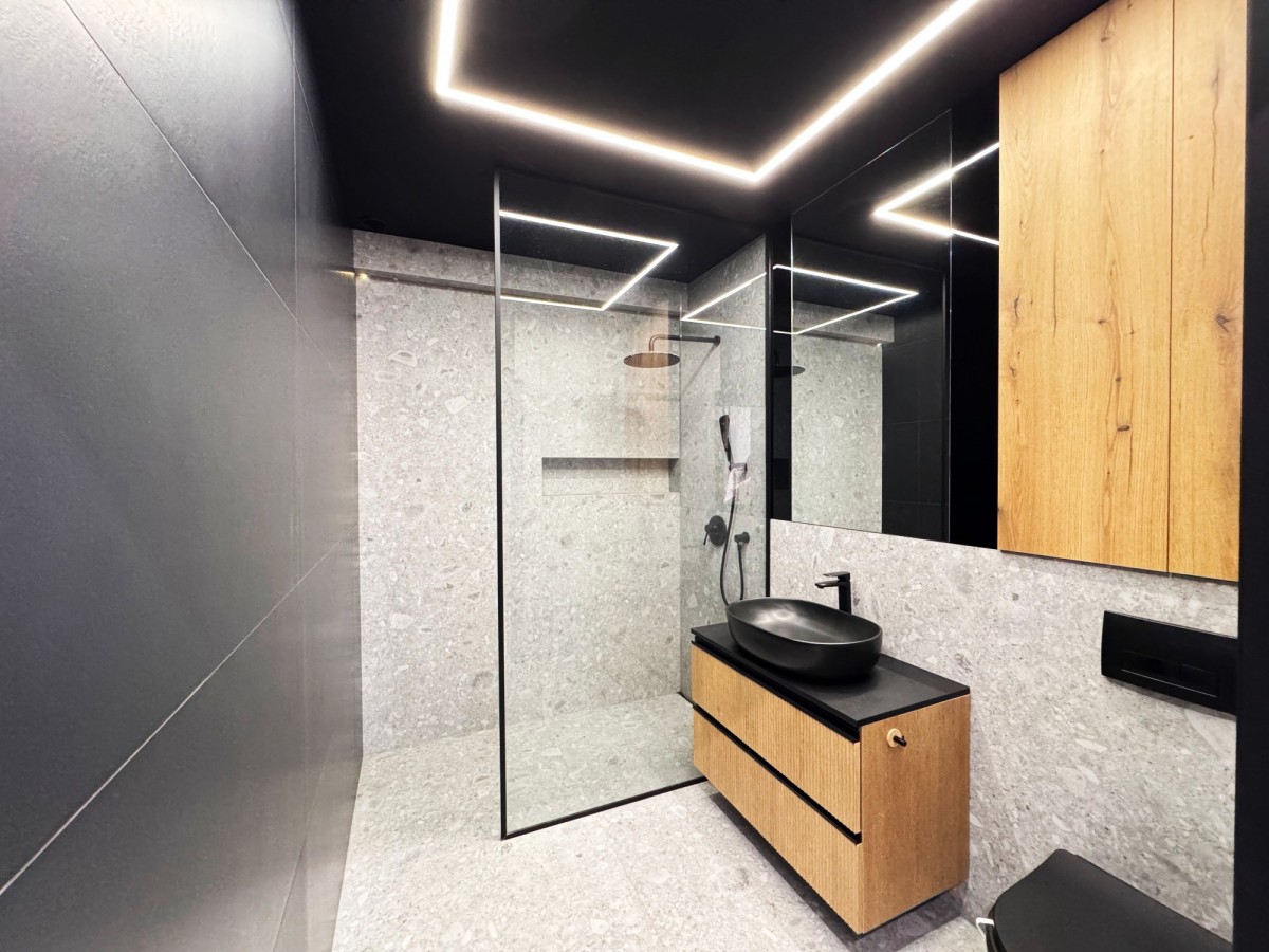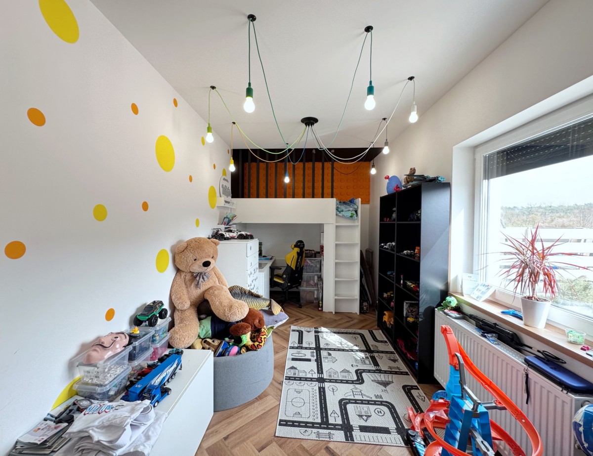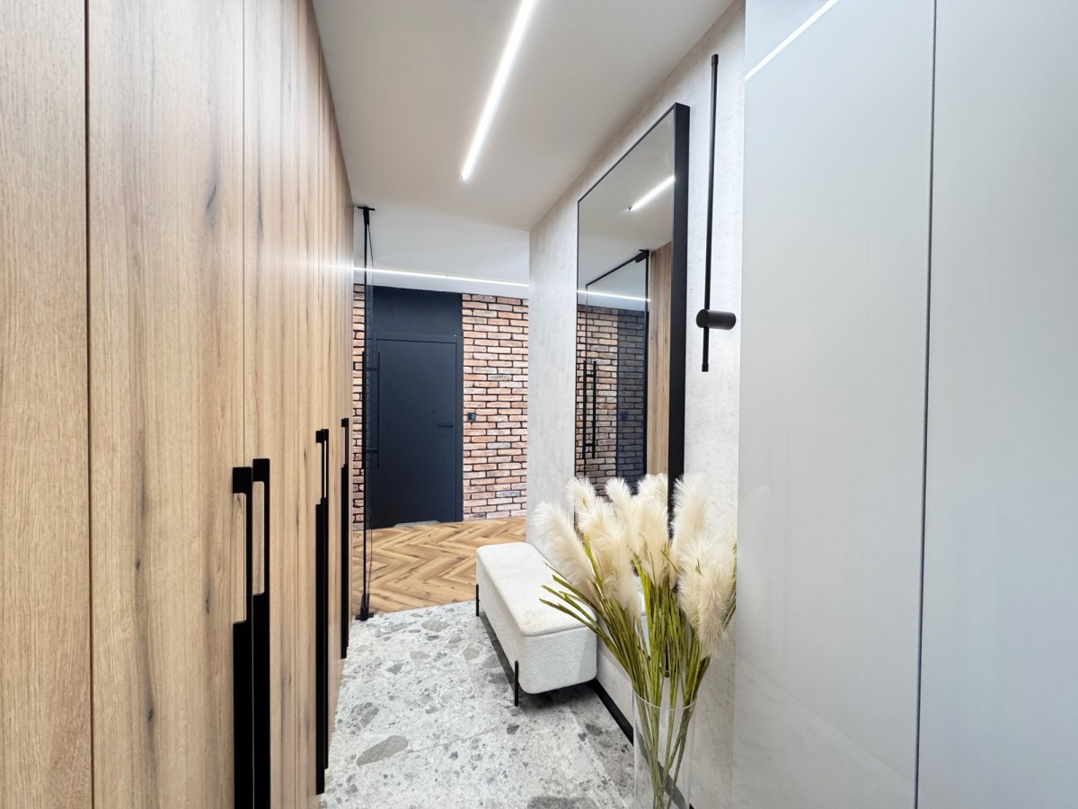 Ten wybudowany w 2023 roku parterowy bliźniak charakteryzuje się wysokim standardem wykończenia oraz spójnym, nowoczesnym designem z elementami stylu loftowego.