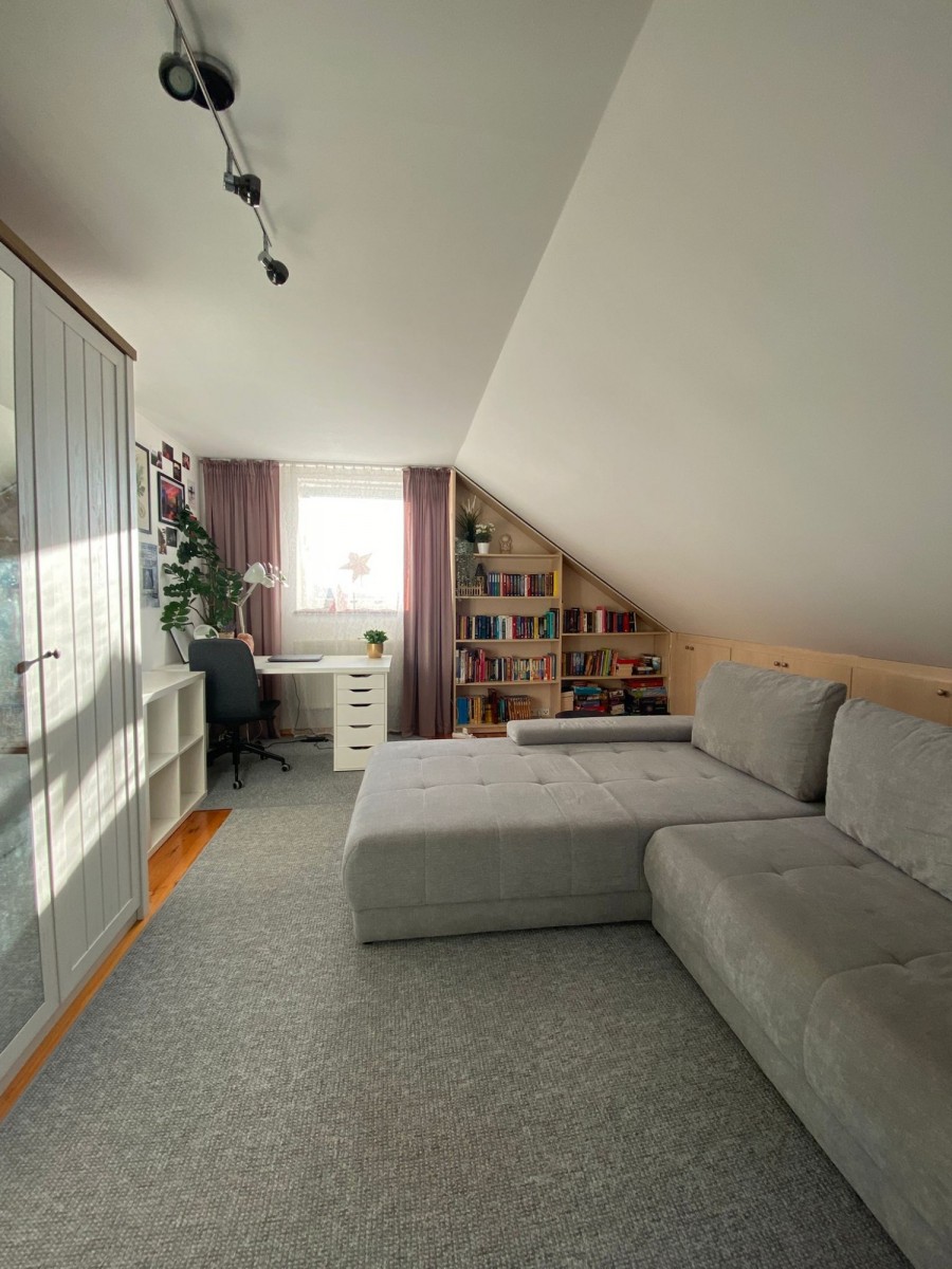 Kondygnacja 4:(poddasze użytkowe): 2 pokoje + sypialnia, komunikacja, duża łazienka z oknem i wanną.