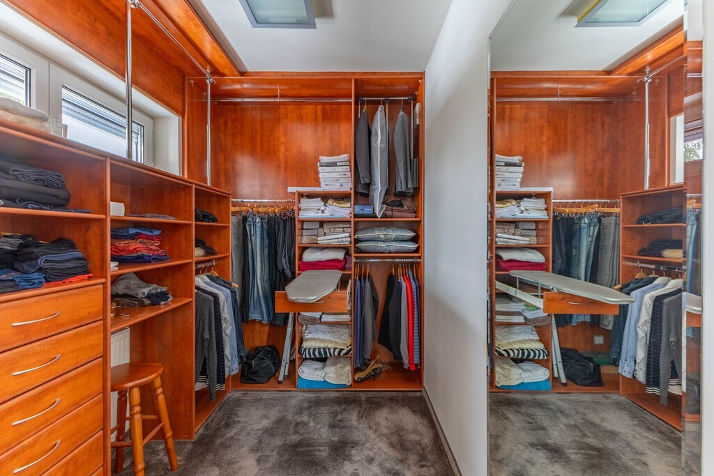 Piętro – trzy sypialnie, w tym jedna typu master bedroom z elegancką, drewnianą garderobą oraz prywatną łazienką.