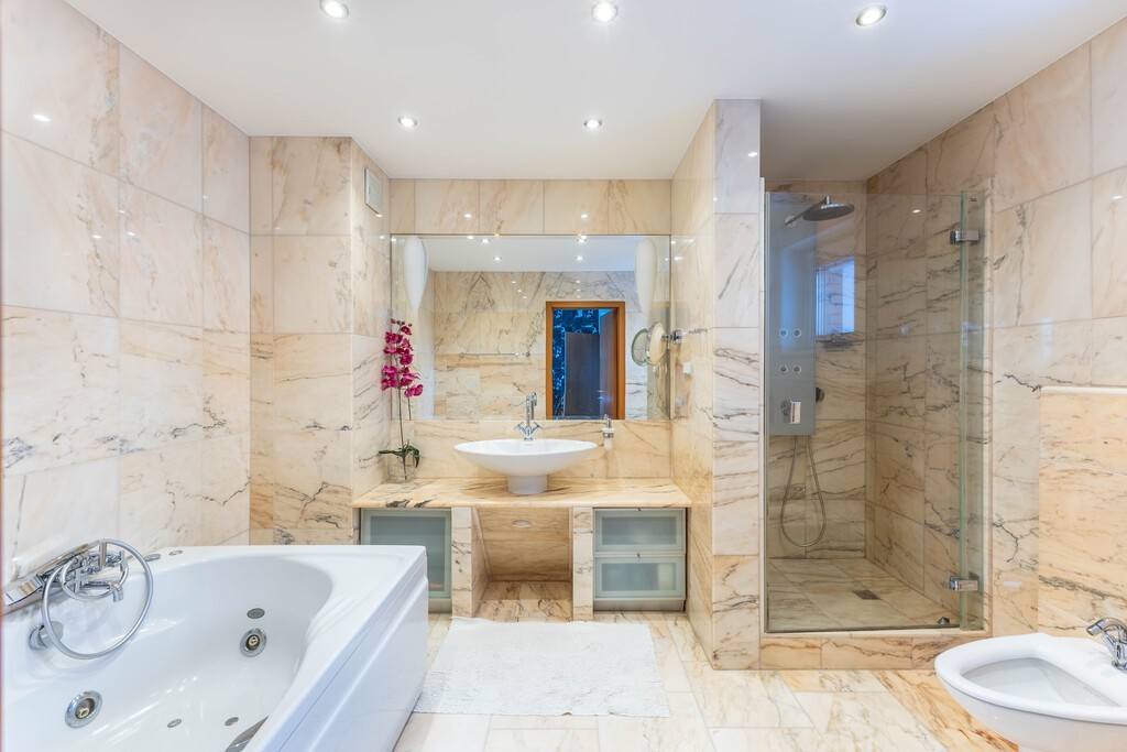 The house was built using traditional technology (ceramic Porotherm polystyrene) in 2000, with high-standard finishes. The windows are PVC. The ground floor, stairs leading to the first floor, and two bathrooms are finished with timeless, always elegant Italian marble . The roof is covered with ceramic tiles. The entire property is well-maintained and move-in ready.