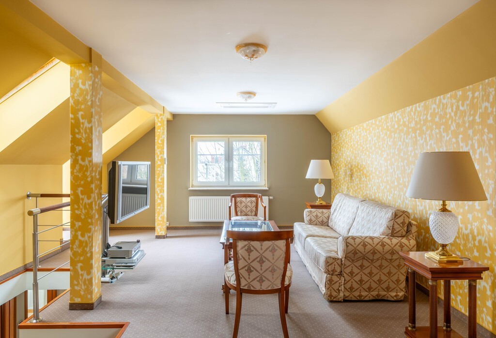 Poddasze – w pełni wykończony, ustawny pokój typu open space.