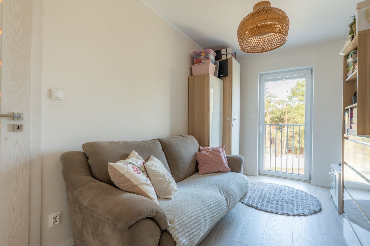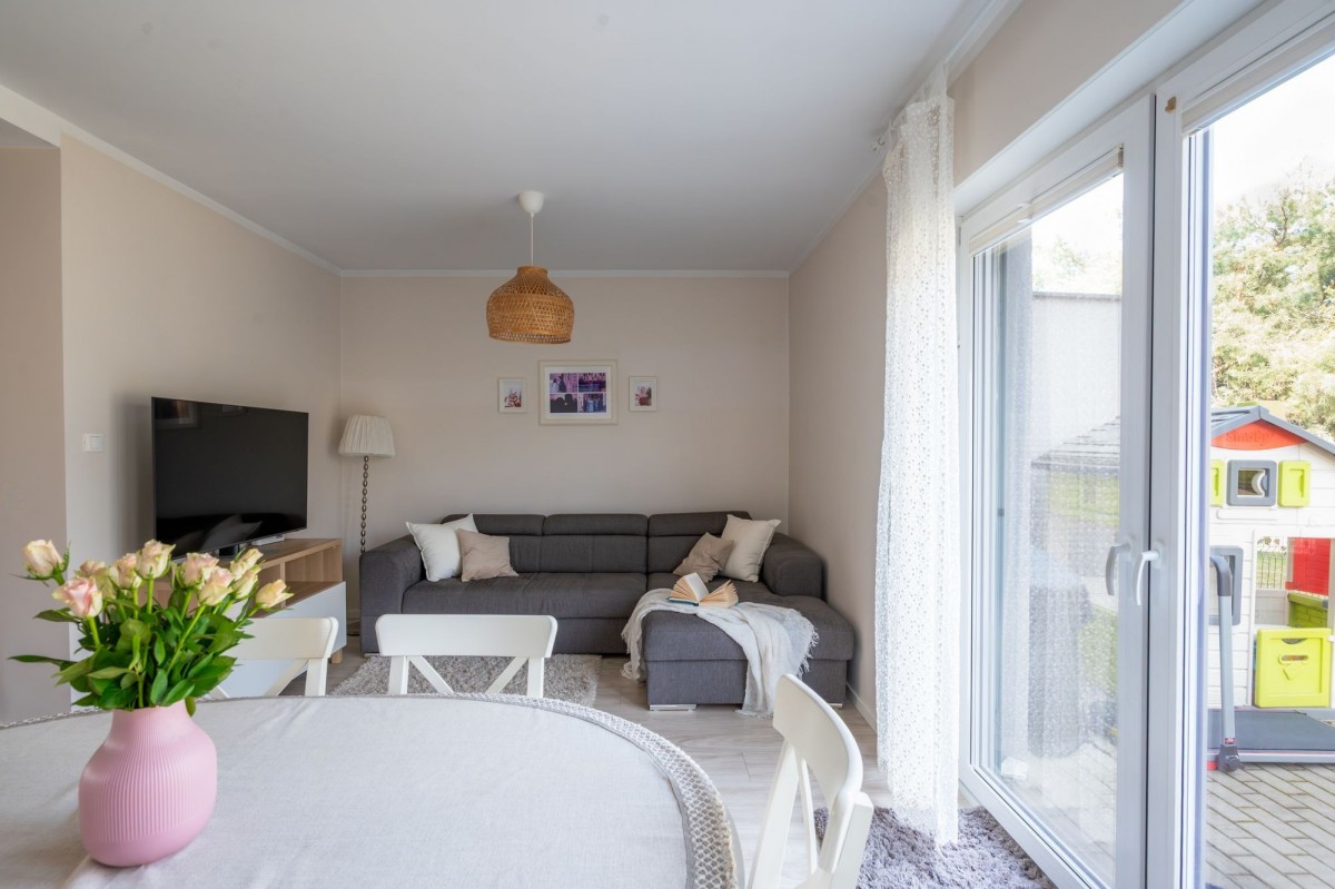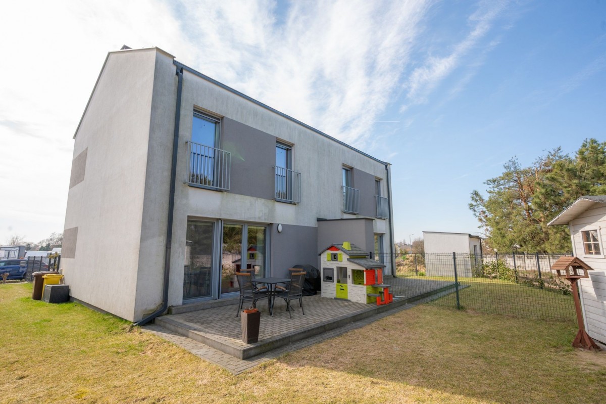Jeśli mieszkanie zaczyna być za małe, a wyprowadzka daleko od miasta nie wchodzi w grę, ten dom jest realną alternatywą. 86 m² powierzchni, własny ogród 350 m² i 4 pokoje dają przestrzeń, której zwykle brakuje w blokach. Do tego 25 km do Poznania i codzienna infrastruktura w pobliżu. O BUDYNKU: Dom w zabudowie dwulokalowej wybudowany w 2020 roku przez dewelopera FM Development. 2 kondygnacje + strych powierzchnia domu: 86,06 m² działka: 350 m² miejsca parkingowe na podjeździe ogród z bezpośrednim wyjściem z salonu