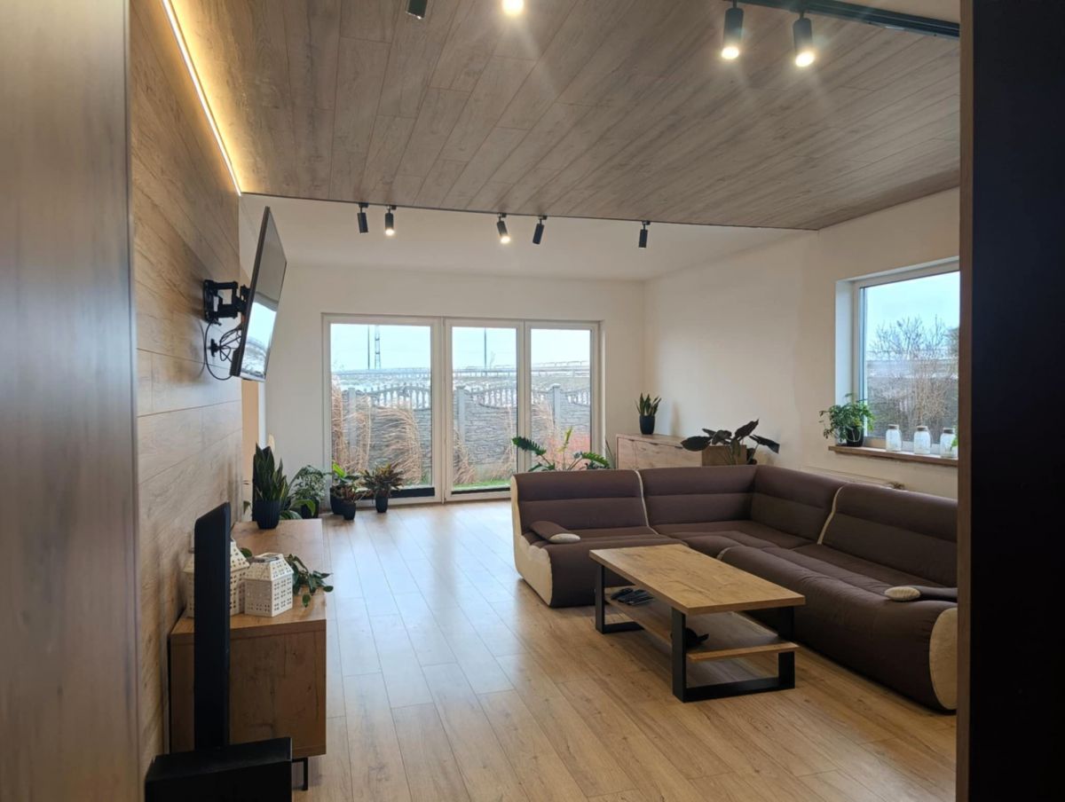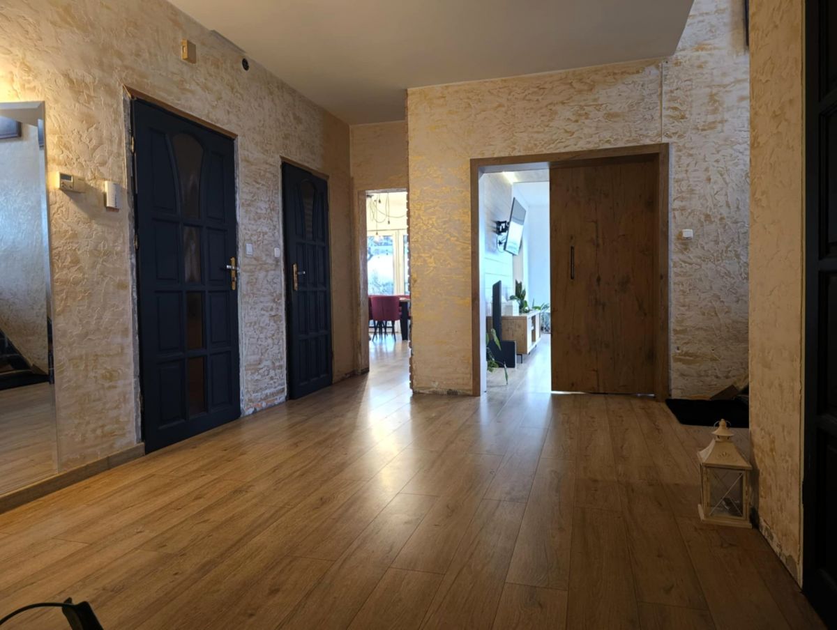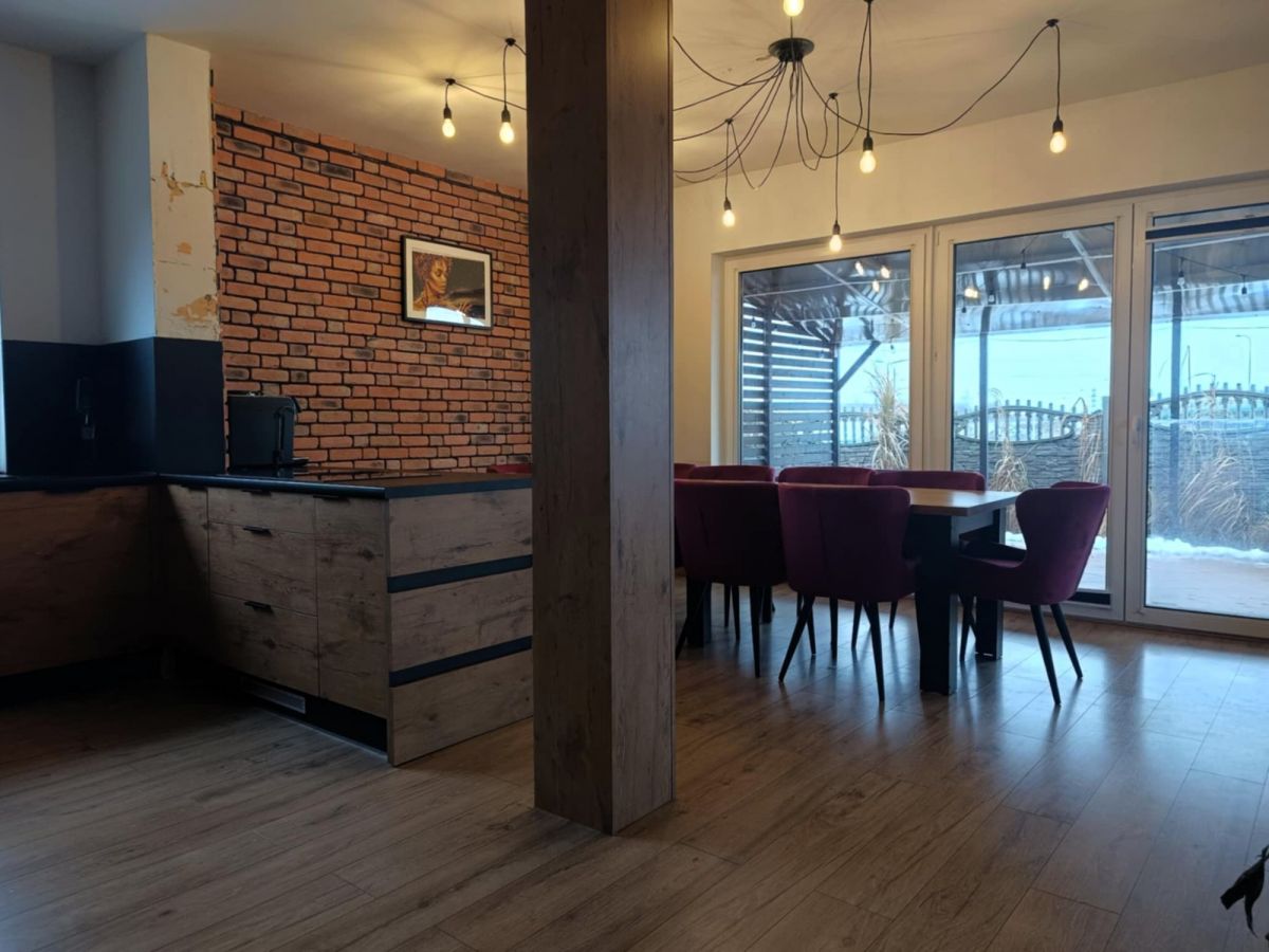 Parter budynku przeszedł częściowy remont obejmujący najważniejsze pomieszczenia użytkowe oraz ich wyposażenie. W jego ramach wykonano nową kuchnię, jadalnię, łazienkę, osobne WC oraz salon z umeblowaniem i zabudową.