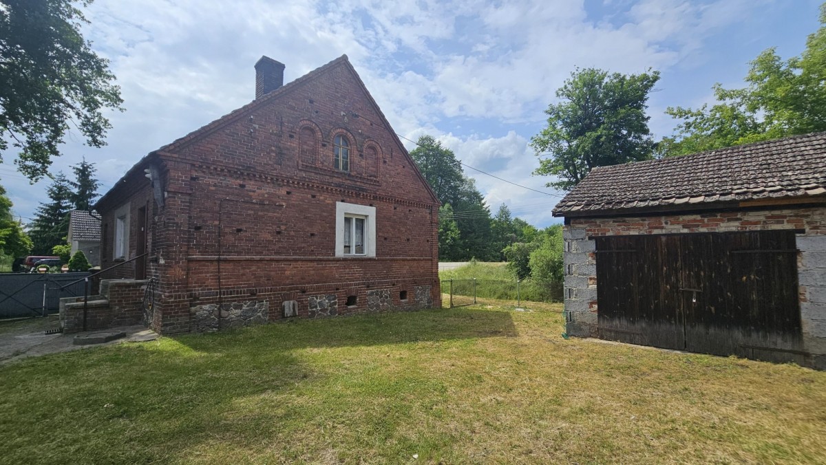 Dom wymaga remontu, ale jego solidna konstrukcja z ceglanymi ścianami i drewnianymi stropami stanowi dobrą bazę do kompleksowej modernizacji. Dach pokryty betonową dachówką, ogrzewanie piecami kaflowymi - to elementy, które możesz odnowić lub zintegrować z nowoczesnymi rozwiązaniami. Nieruchomość jest uzbrojona w niezbędne media: prąd, woda miejska i szambo.