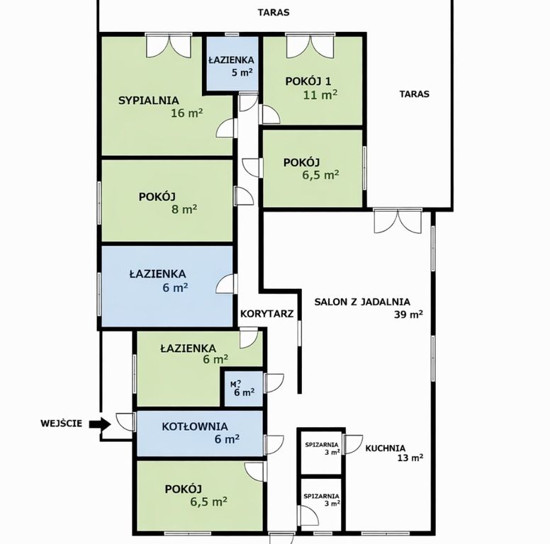 - dwie sypialnie – po 13 m²