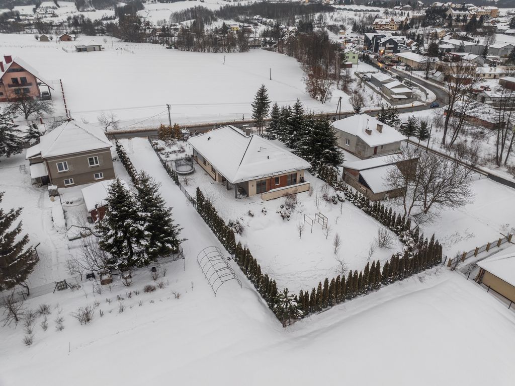 Na sprzedaż komfortowy dom wolnostojący, parterowy, o powierzchni 171 m², położony na przestronnej i zadbanej działce 1 421 m², w spokojnej, zielonej okolicy miejscowości Chmielnik, na terenie Pogórze Dynowskie.