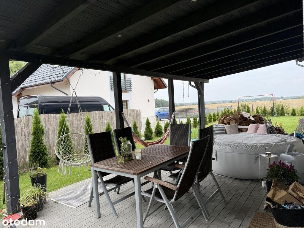 - Ogród: Pięknie zagospodarowana działka, zadaszony taras dający komfort wypoczynku w każdą pogodę.