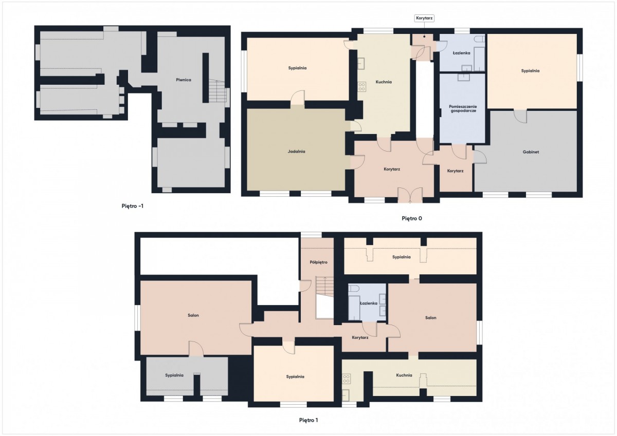 1) Na parterze domu mieszczą się : 4 pokoje, kuchnia, łazienka, korytarz, przedpokój, kotłownia,