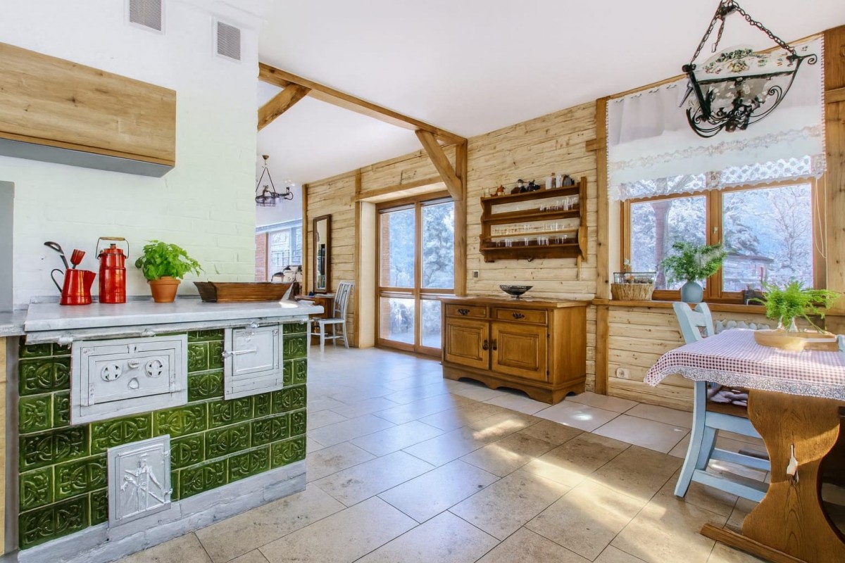 Dodatkowo, zostały wybudowane dwa kominki i tradycyjna kuchnia, opalana drewnem.