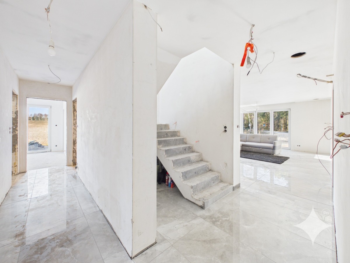 Część dzienną z piętrem łączą solidne schody wylewane, przygotowane do dalszego wykończenia według preferencji przyszłego właściciela.