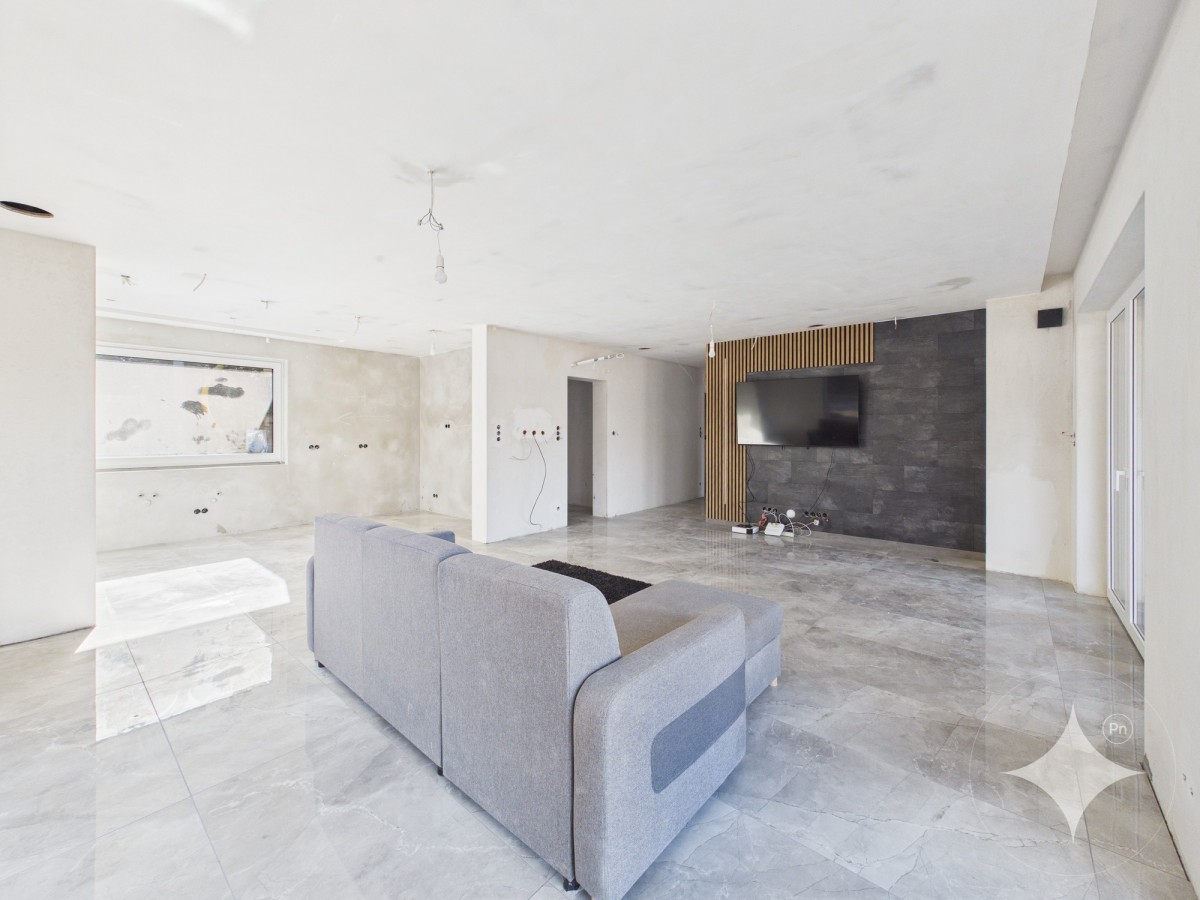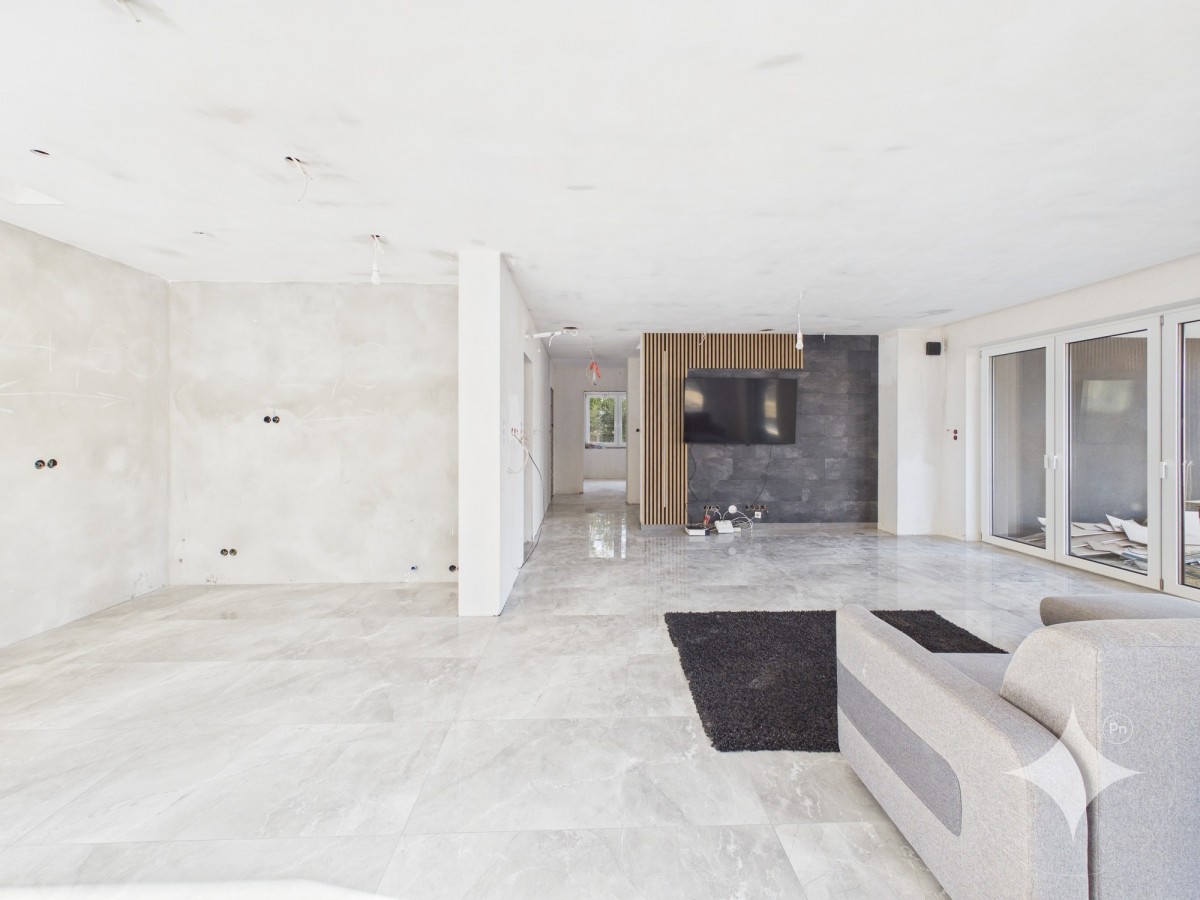 Dom powierzchni całkowitej 260 m², użytkowej 220m² Nieruchomość stanowi doskonałą propozycję dla osób, które chcą wykończyć dom według własnego gustu i potrzeb, jednocześnie mając już wykonane najważniejsze elementy wykończeniowe i instalacyjne.