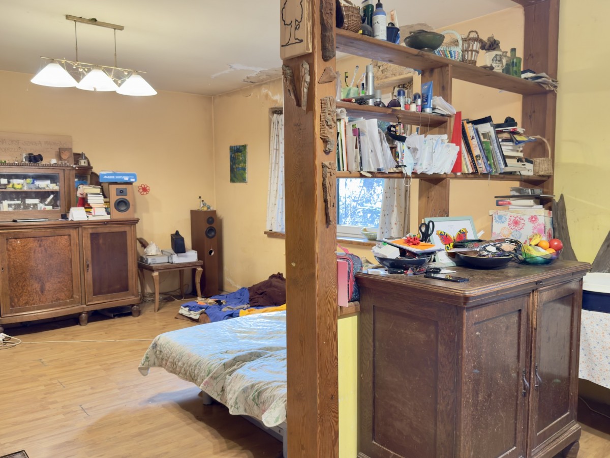 - na piętrze duża przestrzeń podzielona na dwie strefy i nieczynne wc.
