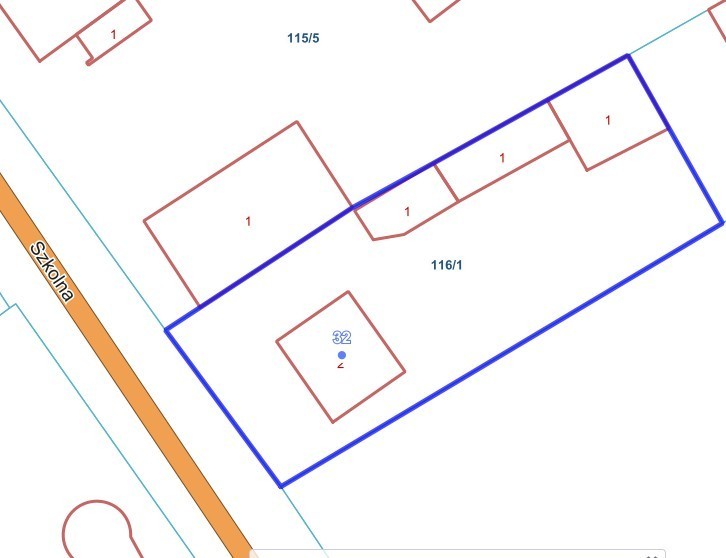 Na działce o powierzchni 992 m2 ( numer ewidencyjny 116/1) znajduję się około 100 letni budynek mieszkalny jednorodzinny w zabudowie wolnostojącej, murowany, podpiwniczony, dwukondygnacyjny. Budynek został wybudowany w latach 30-tych XX w i ma około 140 m2 powierzchni użytkowej. W ostatnich latach wymienione zostały okna na PCV. Dach pokryty jest blachodachówką( budynek nie jest zabytkiem) . Obecnie mieszkają tam właścicielka z rodziną ale dom wymaga generalnego remontu ( włącznie z remontem dachu). Ze względu na duże prace remontowe można rozważyć dodatkową opcję wyburzenia domu i zabudowań gospodarczych w celu postawienia domu od nowa.