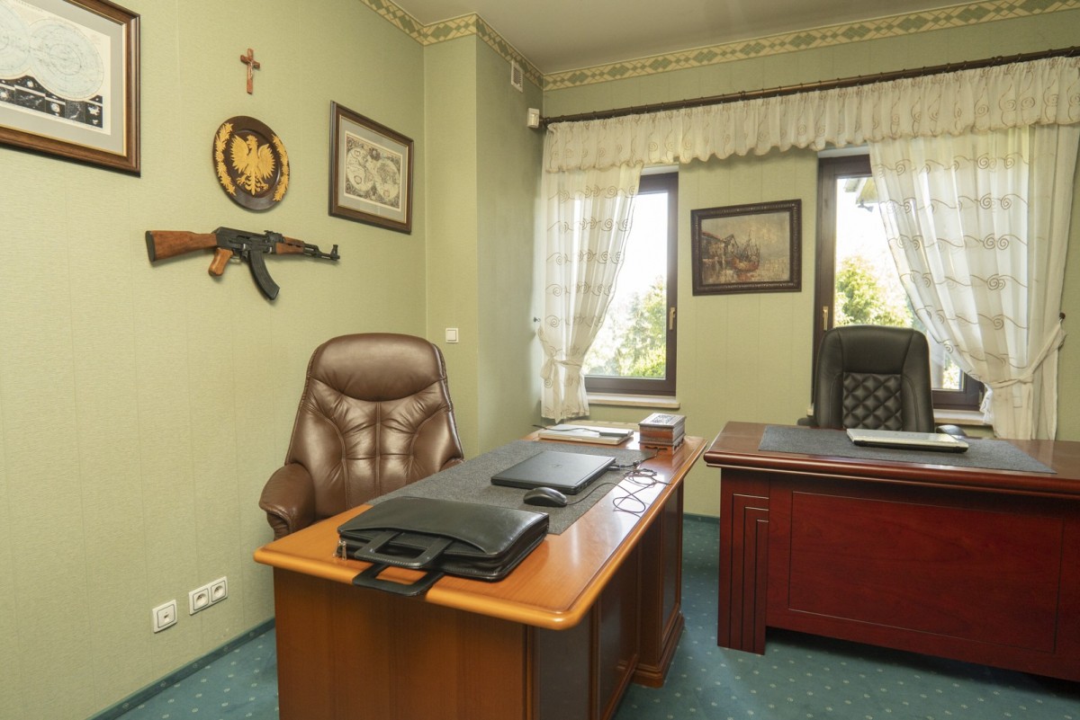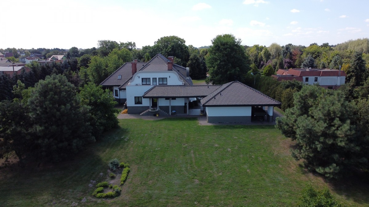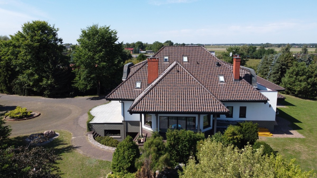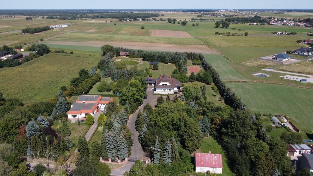 Rozległa działka o powierzchni 1,9 hektara otacza tę wyjątkową rezydencję, zapewniając prywatność i przestrzeń. Na terenie działki znajduje się ogromny staw o wymiarach 30 m x 30 m, który nie tylko dodaje uroku, ale także jest wykorzystywany do podlewania trawnika. Rozległe tereny zielone otaczające rezydencje dodatkowo podkreślają unikalność tej nieruchomości.