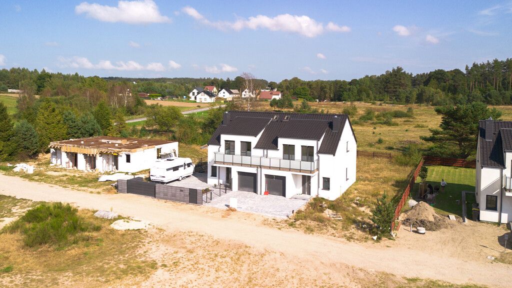 - Technologia: nowoczesna, zabudowa bliźniacza (połączony tylko jedną ścianą)