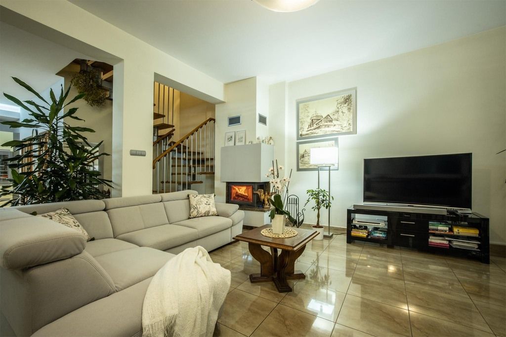 Na podłogach położono parkiety, a całość jest bardzo dobrze utrzymana. Dom nie wymaga żadnych nakładów finansowych – gotowy do zamieszkania od zaraz.