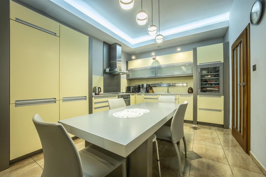 Na niższym poziomie znajduje się: - przestronna kuchnia połączona z jadalnią,