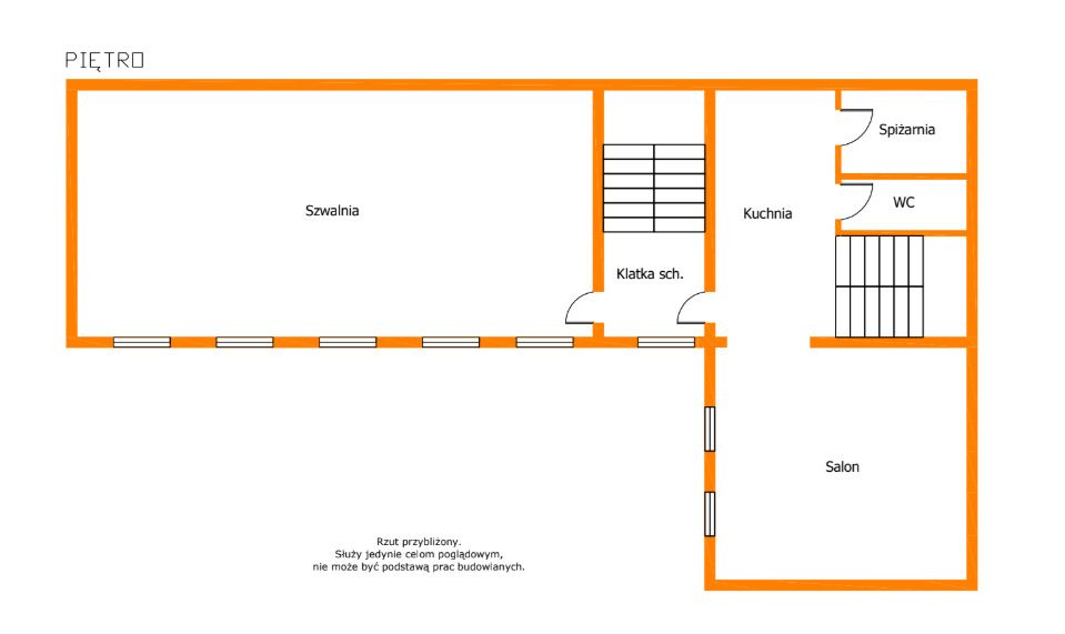 Część usługowo-produkcyjna – 192 m² Drugą istotną część nieruchomości stanowi powierzchnia rozłożona na dwóch poziomach, obecnie wykorzystywana jako szwalnia. Układ oraz standard budynku pozwalają na łatwe dostosowanie przestrzeni do innego rodzaju działalności, m.in.:
