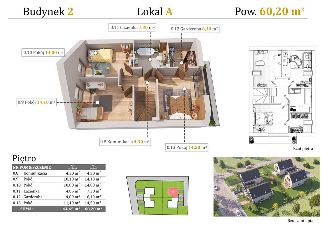 suma:44,65m2 (użytkowa), 60,20m2 (po podłodze).