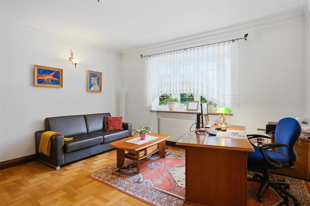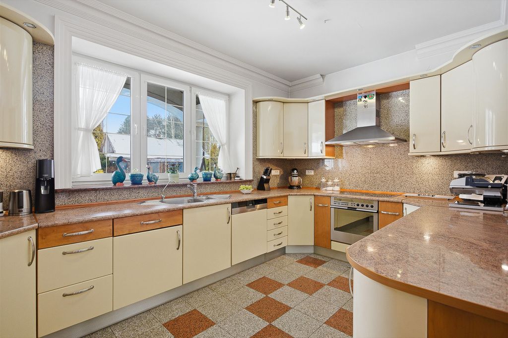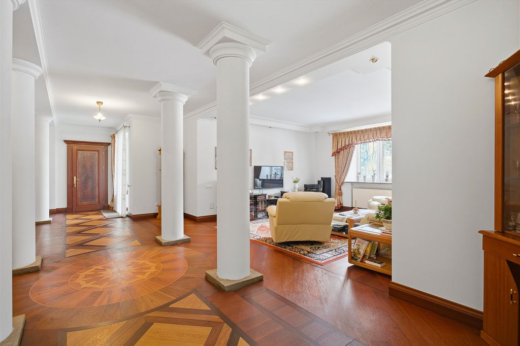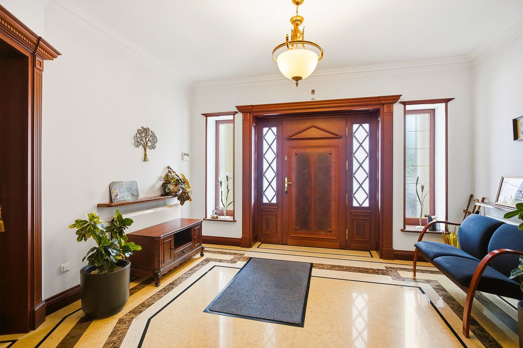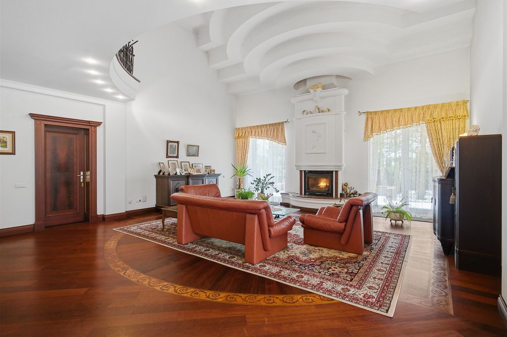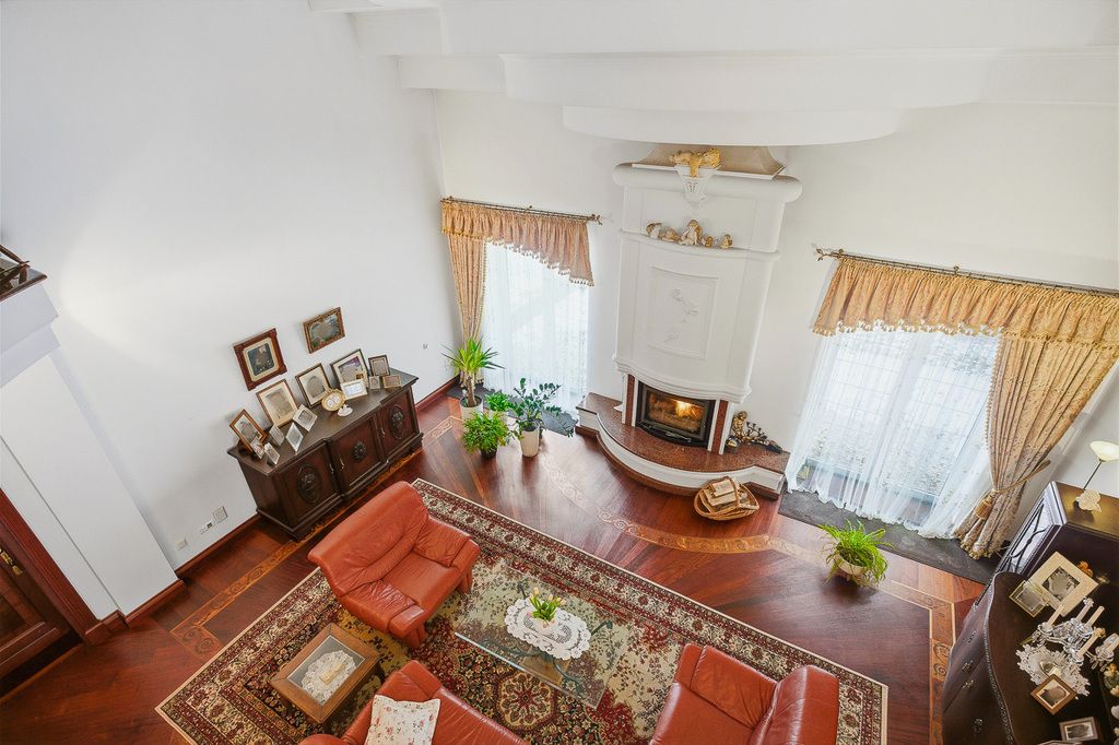Willa z 1996 roku o powierzchni użytkowej 771 m², rozłożona na dwóch kondygnacjach. Dom usytuowany na działce 11 928 m², został wykończony w bardzo eleganckim, ponadczasowym stylu, z użyciem wysokiej klasy materiałów: naturalnego drewna, marmuru oraz detali podkreślających luksusowy charakter wnętrz. Nieruchomość jest gotowa do zamieszkania, bez konieczności dodatkowych nakładów. Budynek solidnie zbudowany z cegły, dach pokryty papą, okna PCV, drzwi wejściowe antywłamaniowe. Dom w bardzo dobrym stanie, gotowy do zamieszkania.