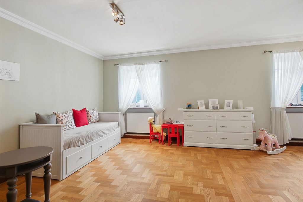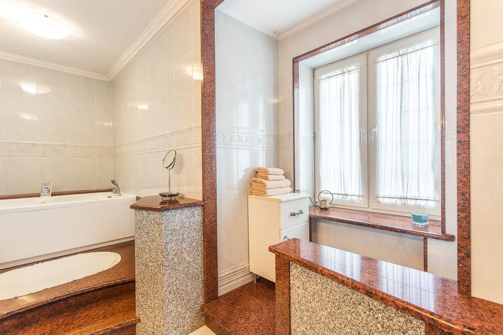 Na podłogach położono prawdziwe drewniane parkiety ze zdobieniami oraz marmur, marmur znajduje się również na parapetach. W każdym pomieszczeniu zamontowany jest odkurzacz centralny.