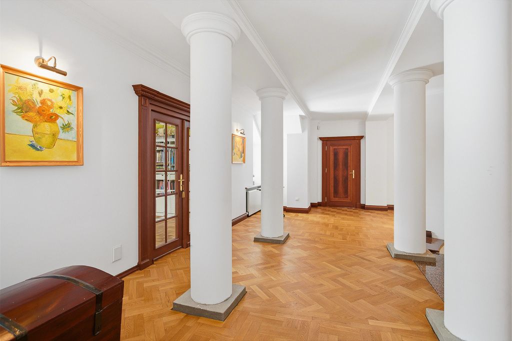 Piętro zachwyca reprezentacyjnym wejściem dwubiegowe marmurowe schody, kryształowy żyrandol oraz wysokość wnętrza ok. 6 metrów, przywodzące na myśl klasyczne wille rezydencjonalne.