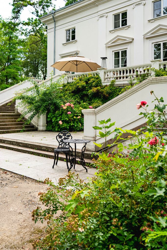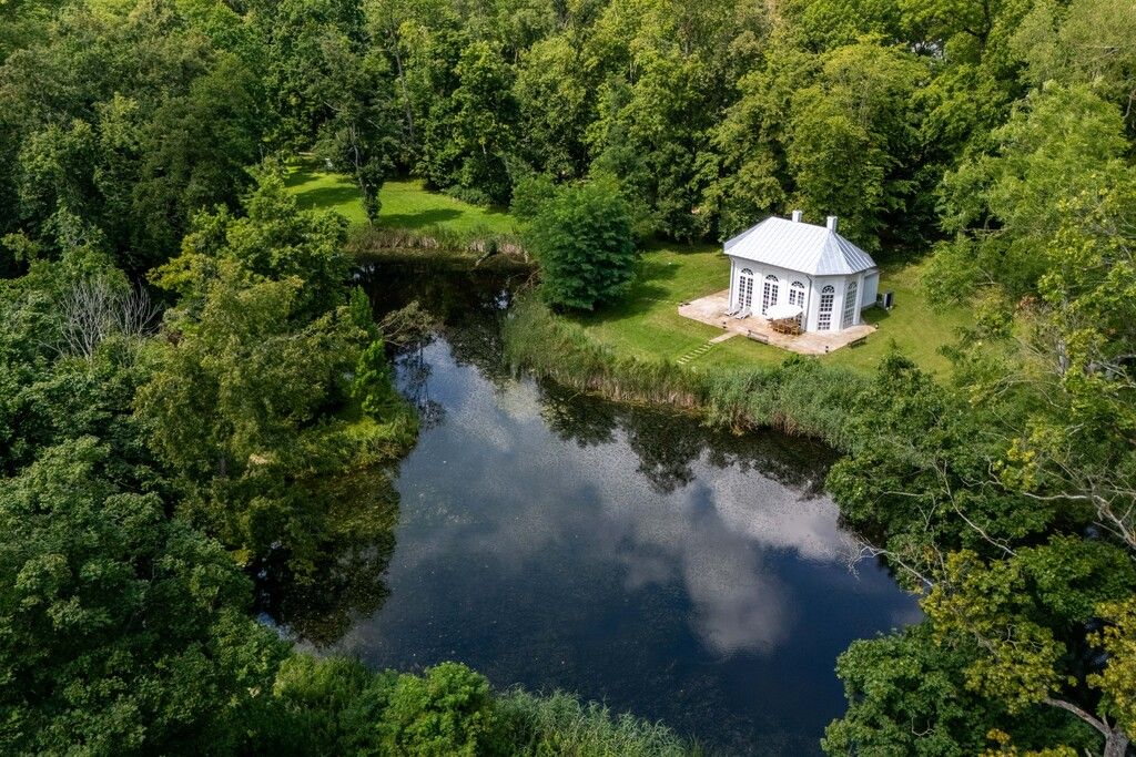 - Zabytkowa oranżeria/herbaciarnia nad stawem — stanowi dodatkowy, kameralny apartament z niepowtarzalnym klimatem.