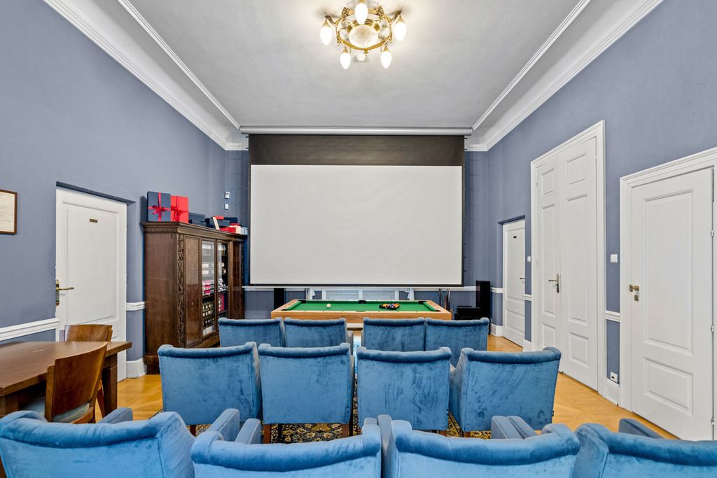 - Bar z biblioteką i sala kinowo‑multimedialna: idealne miejsce na konferencje, eventy firmowe, kameralne projekcje