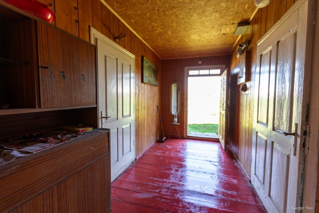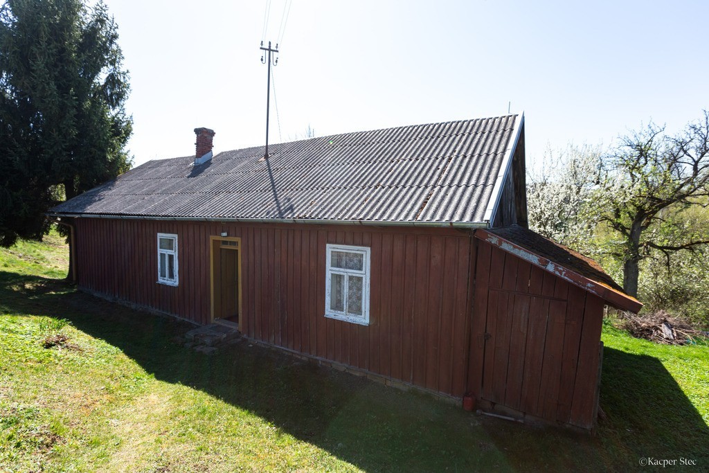 Oferta zawiera również blisko 69 arową działkę pod uprawę oraz ponad 150 arów zalesionych jodłą i brzozą pastwisk trwałych. Istnieje możliwość zakupu działek osobno. Dom składa się z trzech pokoi, w tym kuchnia z salonem, składzik i weranda która jest dodatkową przestrzenią do przechowywania lub zagospodarowania według uznania. Toaleta znajduje się przy stajni. Na działce jest szambo które można rozbudować. Wymagane jest wykopanie studni bądź porozumienie się z sąsiadem w sprawie dostępu do wody. Na działce jest dostęp do prądu.
