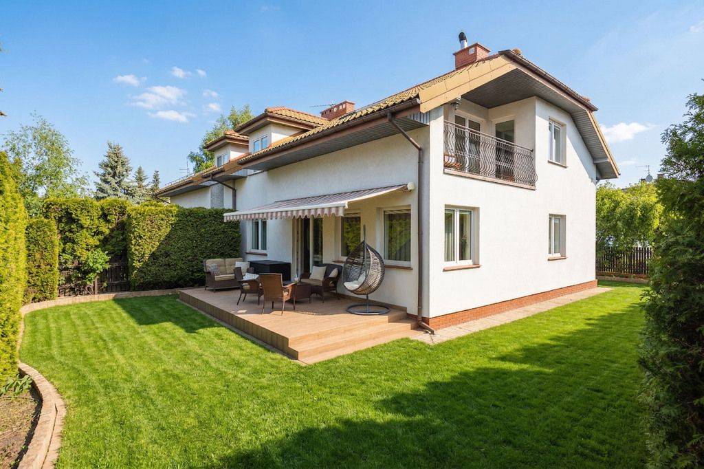 Józefosław ul. Sasanki Kameralne osiedle 220 m² przestrzeni Ogród z tarasem i markizą Cisza i zieleń przy Lesie Kabackim