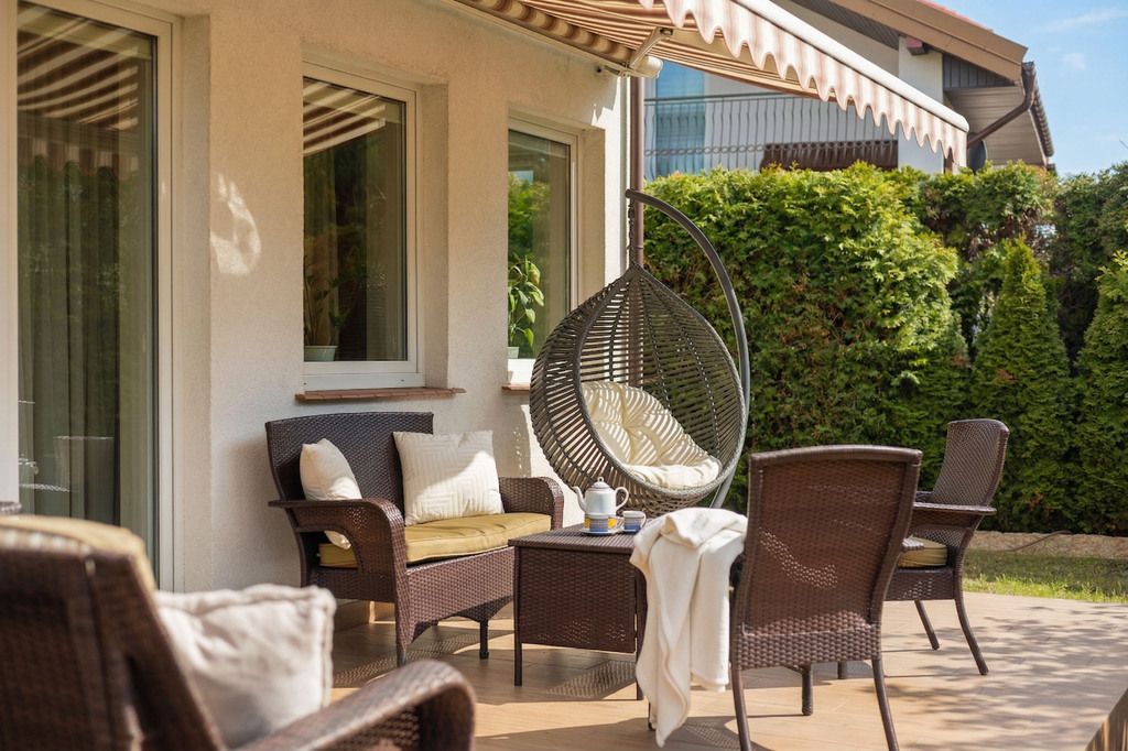 - ogród z tarasem i markizą,