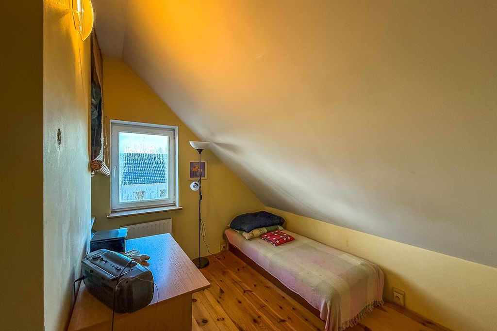 Na piętrze znajdują się dwie sypialnie oraz trzecie pomieszczenie do całkowitej aranżacji, które może być dodatkową sypialnią. Okna PCV oraz podwójne drzwi wejściowe zapewniają trwałość i bezpieczeństwo.