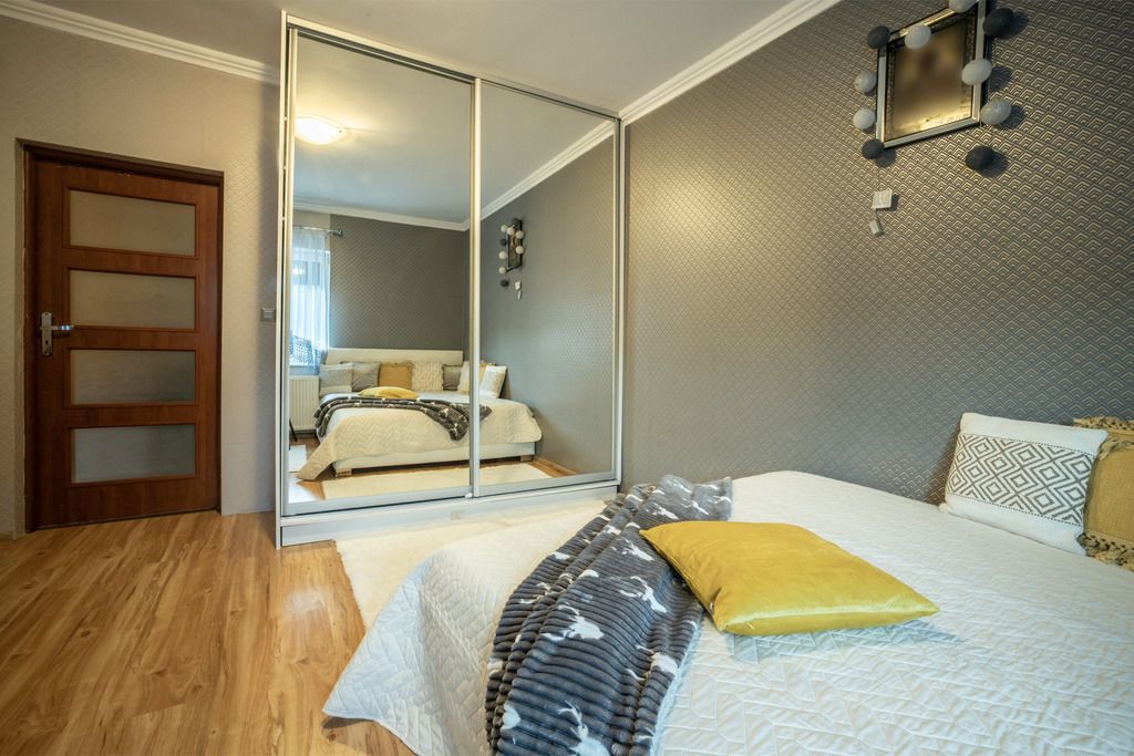 Na parterze nieruchomości mieści się: garaż, salon z jadalnią, kuchnia, toaleta oraz dwie sypialnie. Na piętrze znajdują się natomiast dodatkowe pomieszczenie do dowolnej aranżacji. Wszystkie pomieszczenia są bardzo jasne oraz naświetlone. Dom jest umeblowany, gotowy do wprowadzenia od zaraz.