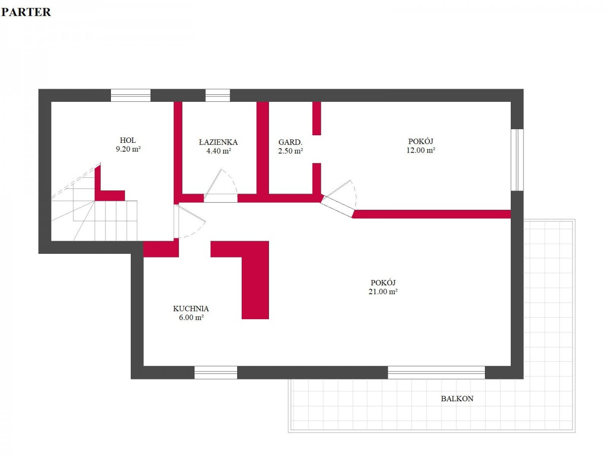Obecne rozmieszczenie pomieszczeń mieszkalnych powstało w wyniku podziału domu na 2 niezależne mieszkania.