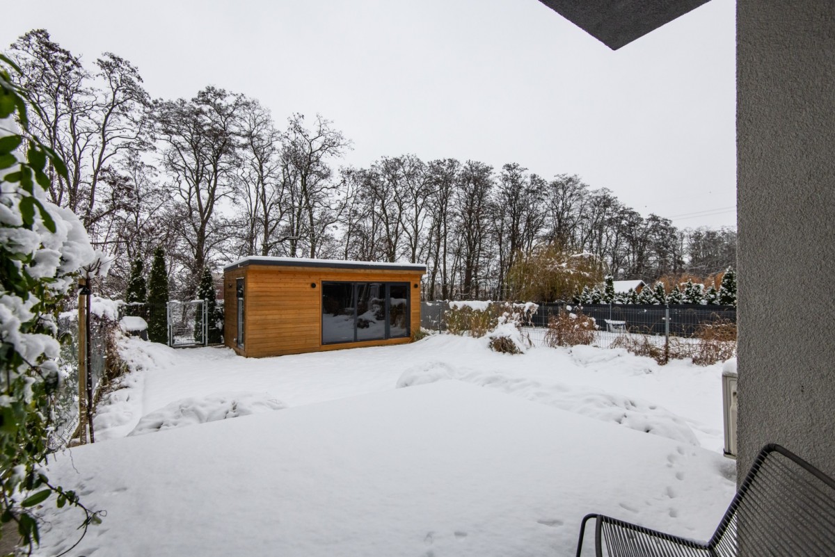 • na ogrodzie klimatyzowany domek wraz z oddzielnym pomieszczeniem gospodarczym o łącznej powierzchni około 18 m2