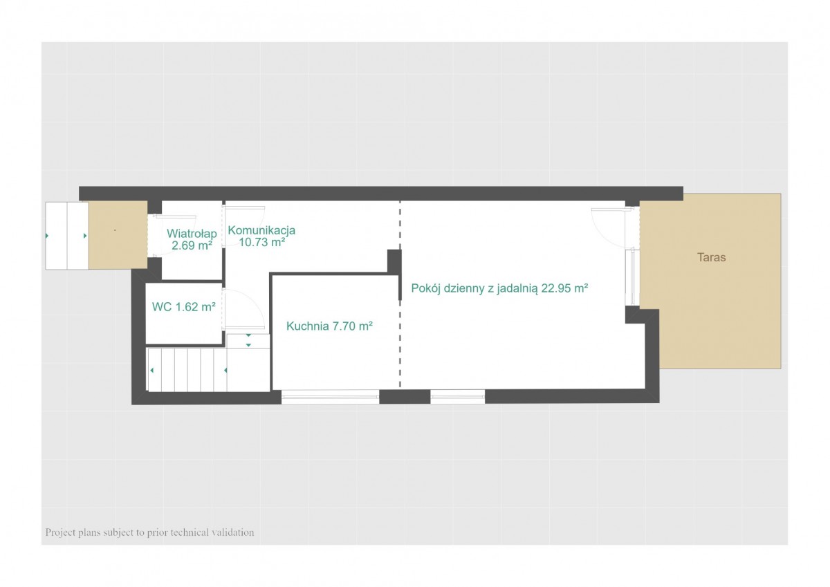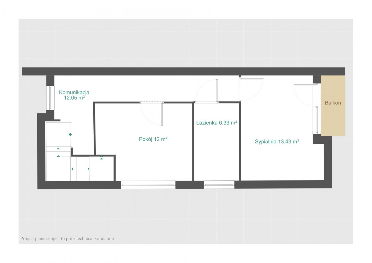 • Brak skosów na piętrze - pełna wysokość pomieszczeń