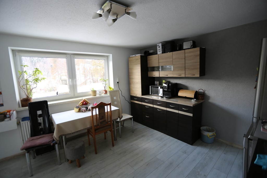 W pokoju przechodnim na II piętrze znajduje się piękny piec kaflowy obudowany białymi płytkami. Pomieszczenie to można adaptować na kuchnię. Do budynku prowadzą dwa wejścia, jedno z parteru a drugie przez balkon na I piętrze. Obok budynku znajduje się większe pomieszczenie gospodarcze zbudowane częściowo z drewna oraz pustaków żużlobetonowych. Natomiast przy wjeździe zlokalizowany jest zamykany garaż.