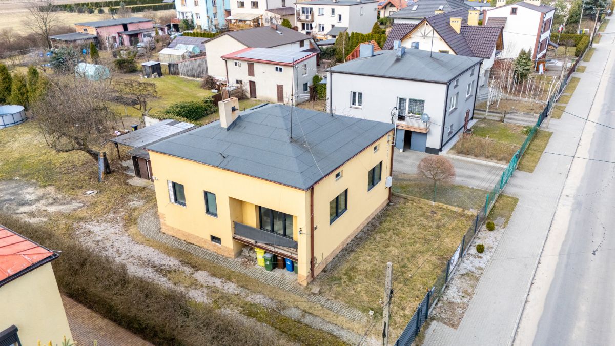 Na dachu wyłożona papa z 2021 roku. Zewnętrzna forma budynku o klasycznej, prostokątnej bryle z dwuspadowym dachem jest funkcjonalna i ponadczasowa - idealna dla osób ceniących prostotę, wygodę i możliwość dalszej aranżacji.