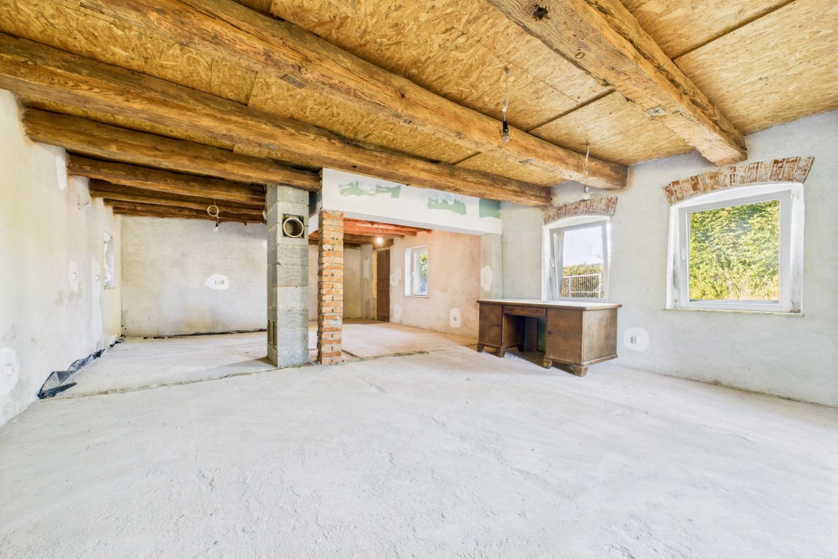 Dom jest w stanie do wykończenia, co daje przyszłemu właścicielowi możliwość aranżacji według własnego gustu. Do dyspozycji mamy także budynek gospodarczy, który jest idealną opcją na garaż, warsztat lub przestrzeń magazynową. Duży ogród z sadem zapewnia własne, zdrowe owoce prosto z ogrodu - jabłka, gruszki, śliwki, wiśnie, porzeczki czy maliny, wszystko bez chemii i z pewnego źródła. To nie tylko oszczędność, ale i satysfakcja z własnych zbiorów.