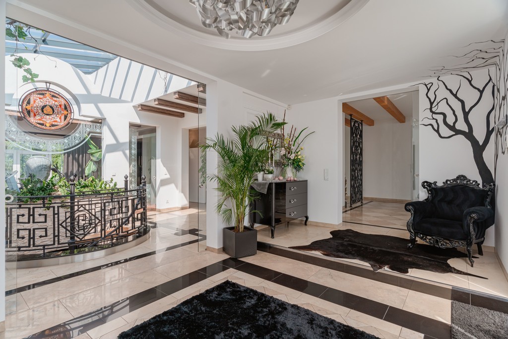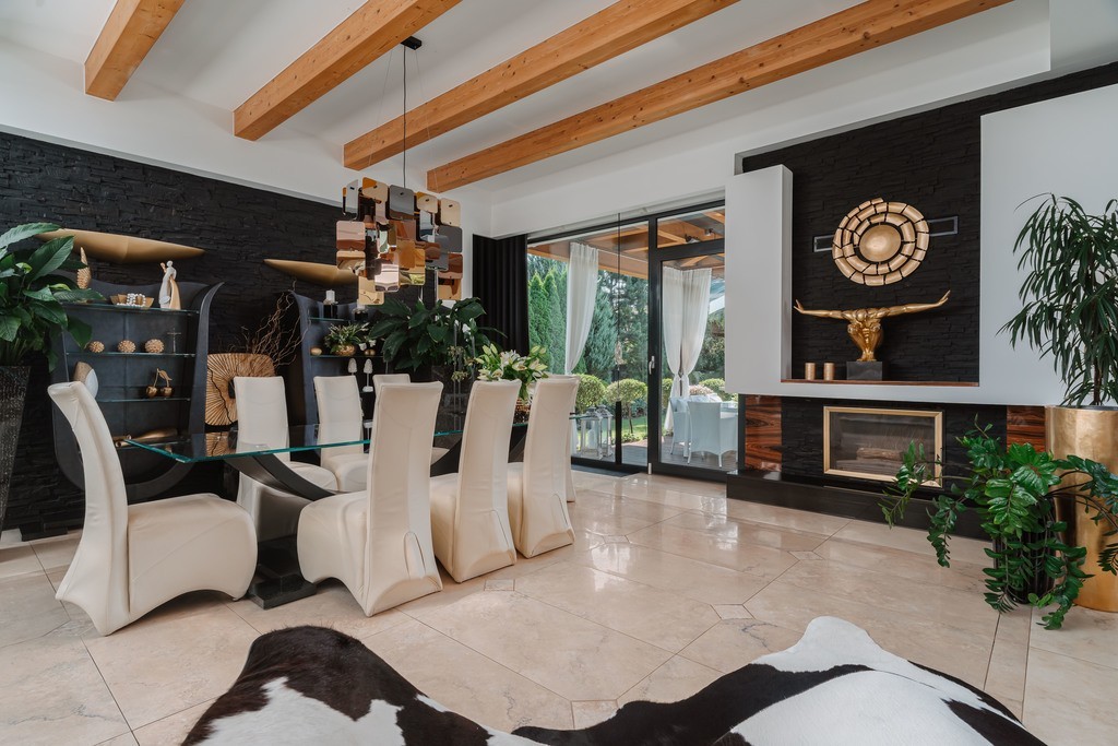 Wnętrze willi jest jasne i przestronne, utrzymane w spójnej, nowoczesnej stylistyce.