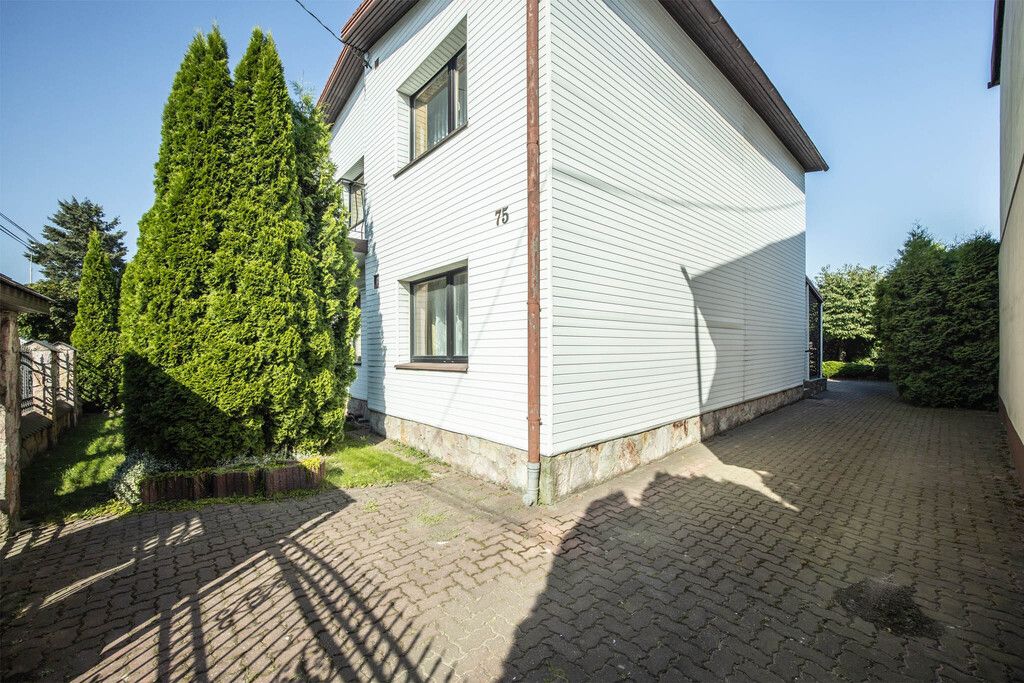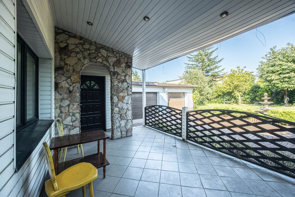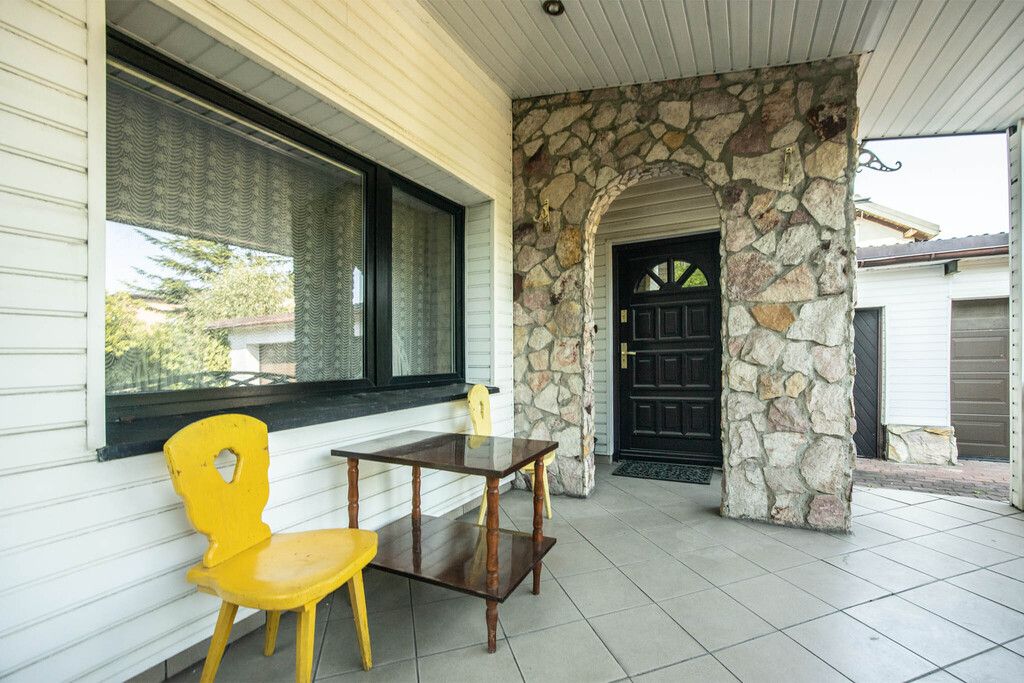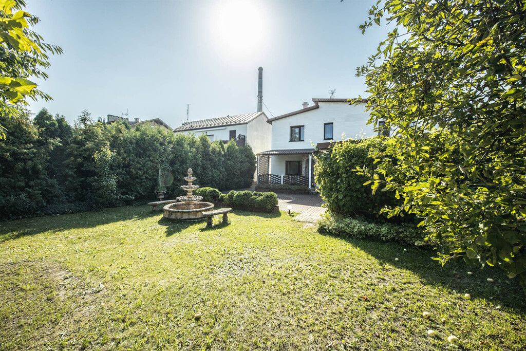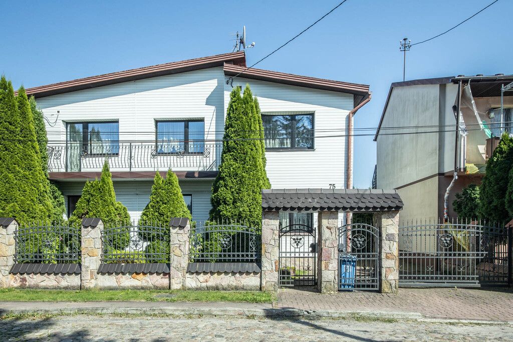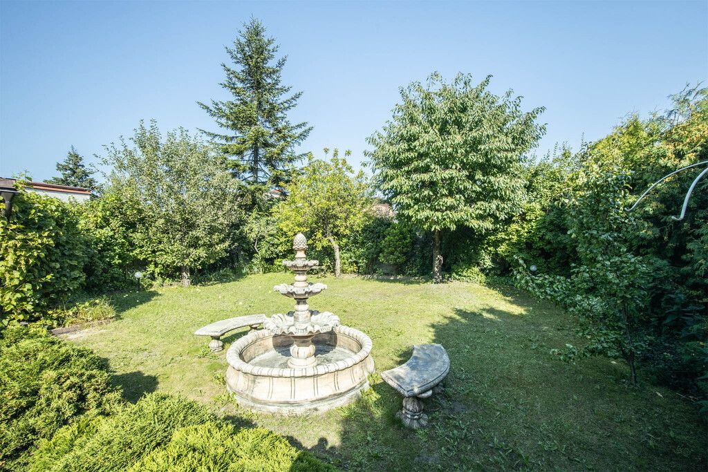 Dom usytuowany jest na pięknej, zadbanej działce o powierzchni 592 m². Otacza go starannie utrzymany ogród z drzewami owocowymi, gdzie można odpocząć w cieniu lub spędzać czas z rodziną i przyjaciółmi. Na podwórzu ułożona jest kostka brukowa, która dodaje elegancji i ułatwia codzienne korzystanie z przestrzeni. Całość ogrodzona jest solidnym, murowanym ogrodzeniem z bramą otwieraną na pilota – gwarancja prywatności i bezpieczeństwa.