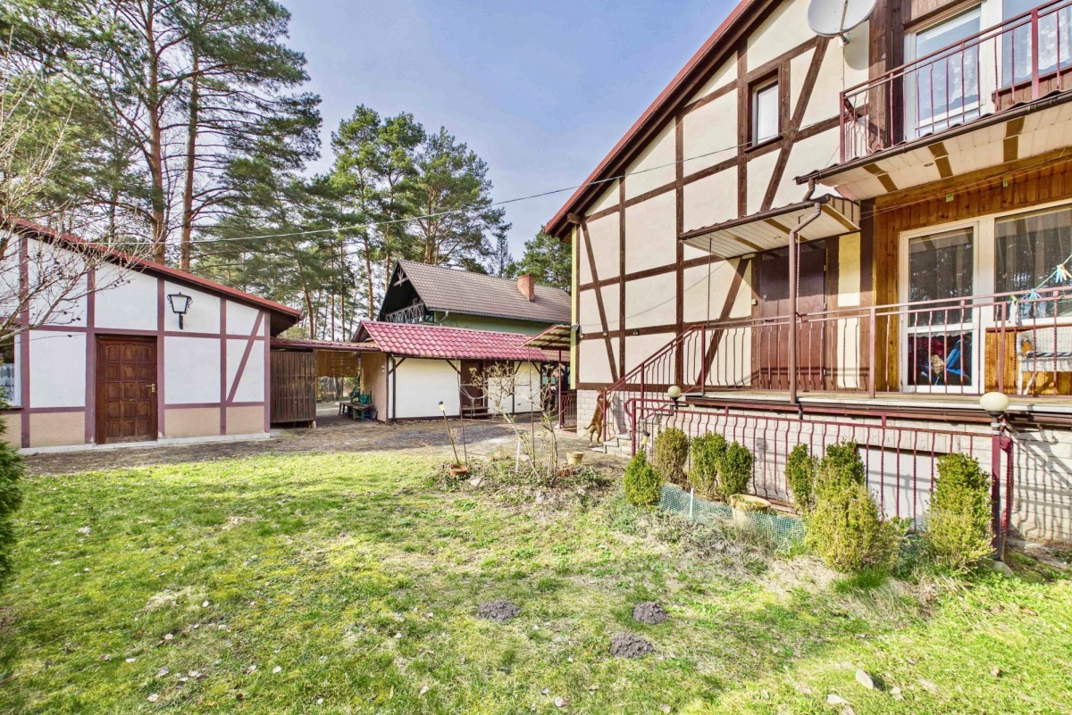 Dom typu bliźniak usytuowany jest blisko lasu oraz zaledwie ok 200 metrów od tafli jeziora. To idealne miejsce dla miłośników natury, joggingu, spacerów i ciszy, a bliskość szlaków rowerowych, stadniny koni i wieży widokowej daje nieograniczone możliwości aktywnego wypoczynku. Przyszły właściciel może prowadzić wynajem pokoi ale również dom może być ucieczką z miasta dla dużej rodziny.