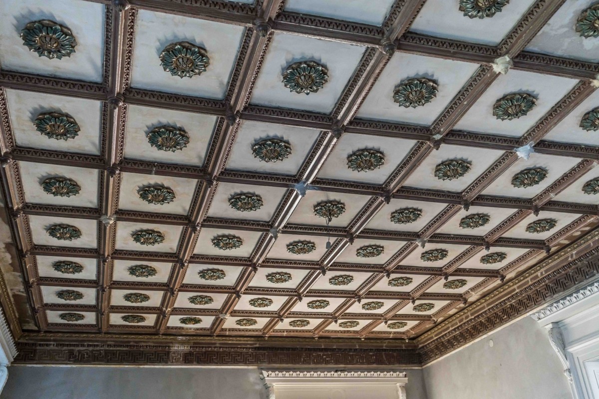• ozdobne sztukaterie i zdobienia sufitów w wielu pomieszczeniach
