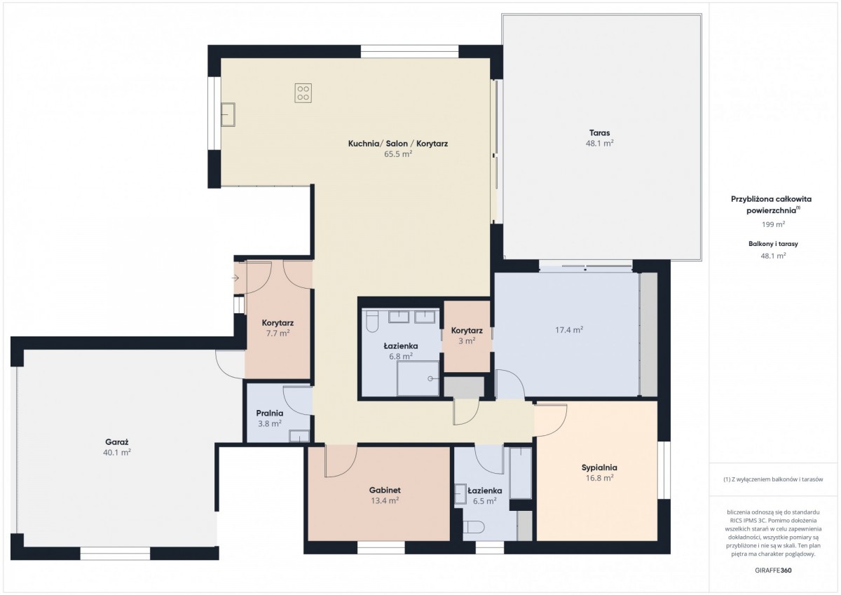 • Powierzchnia całkowita: 199,38 m² (z kotłownią i garażem, bez tarasu)
