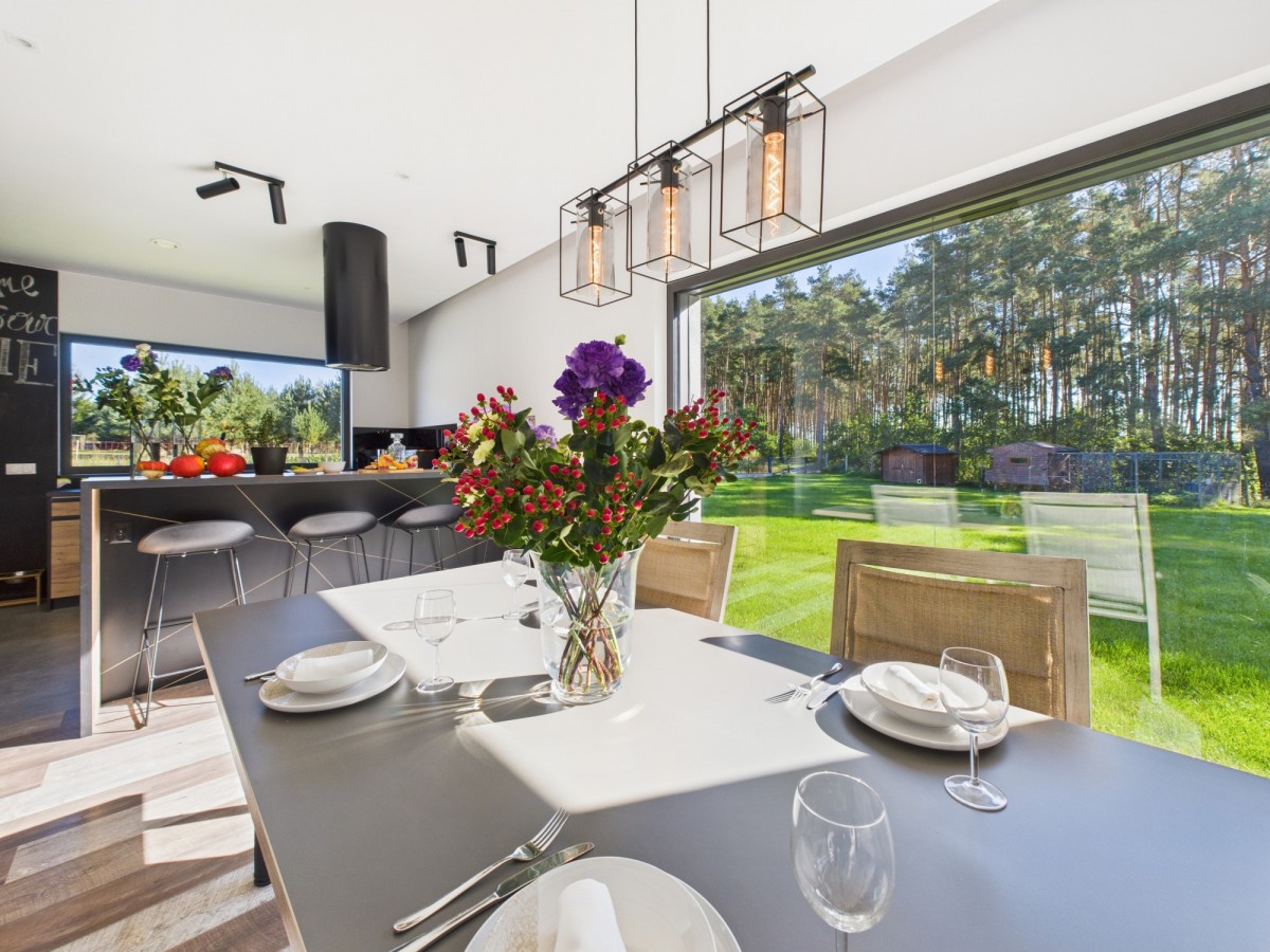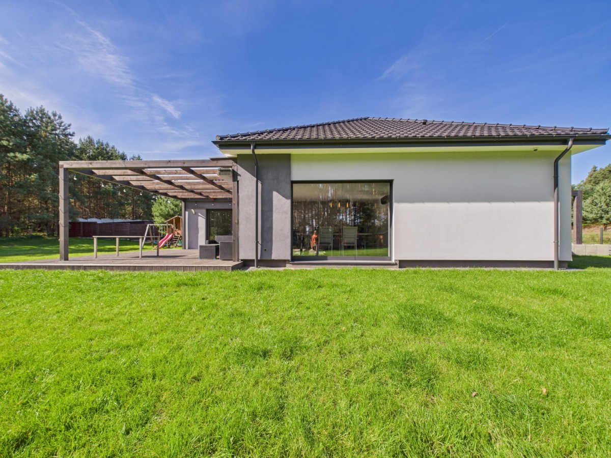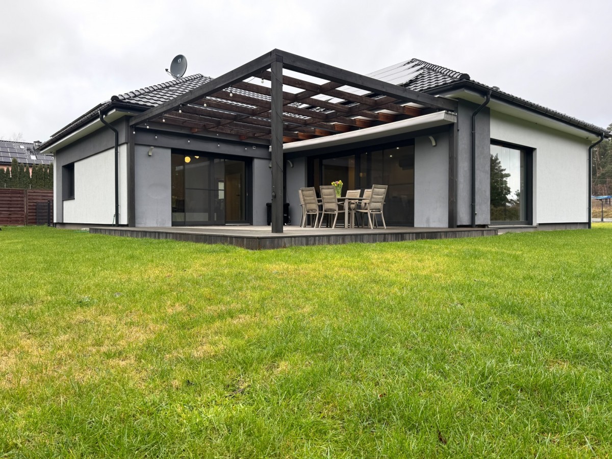 Dom wyróżnia się przemyślanym układem wnętrz oraz dużymi przeszkleniami, które otwierają przestrzeń na ogród i taras. Wysoki standard wykończenia oraz nowoczesne technologie sprawiają, że nieruchomość jest gotowa do wprowadzenia bez dodatkowych nakładów.