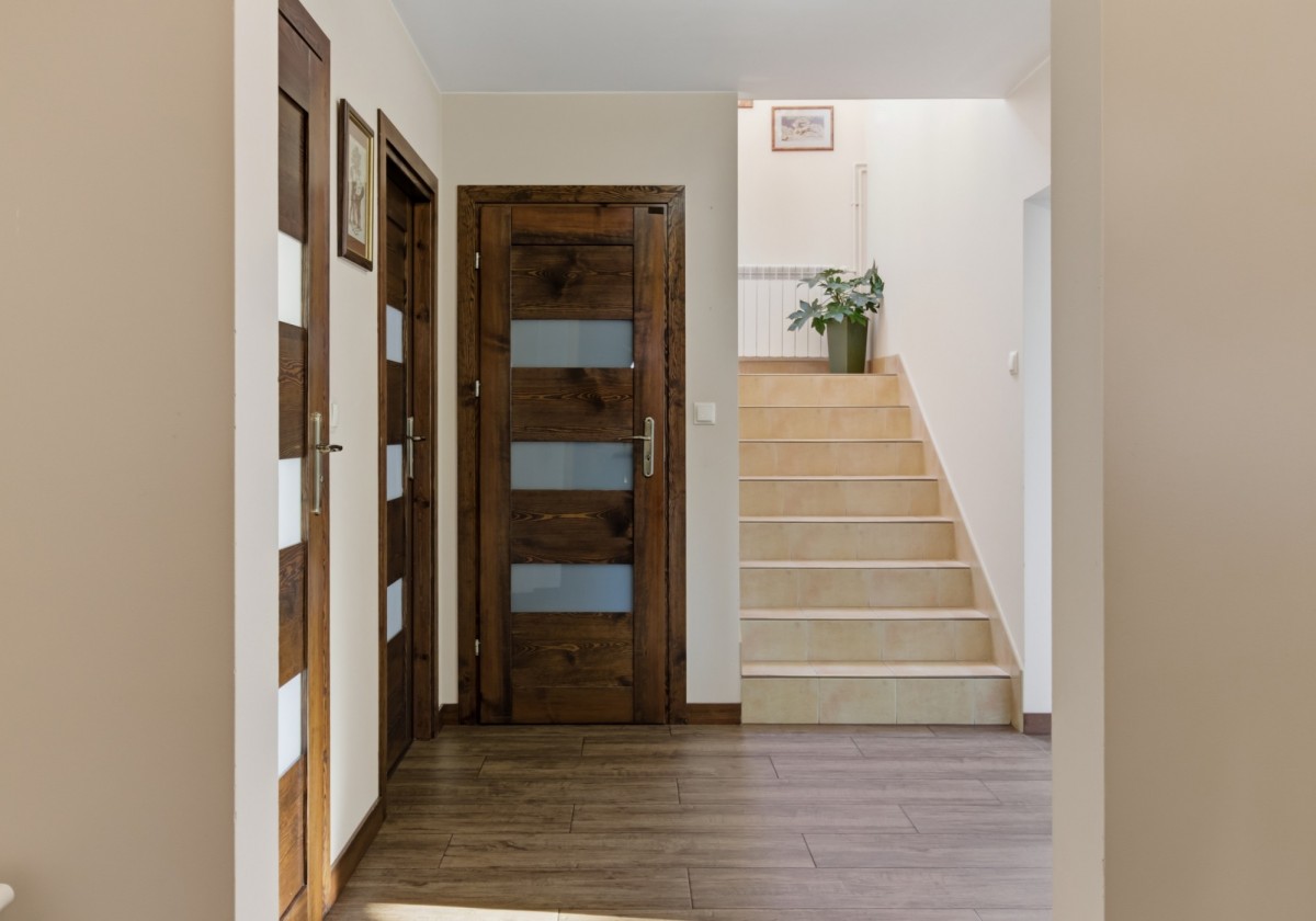 Przedsionek z wejściem przez solidne drewniane drzwi