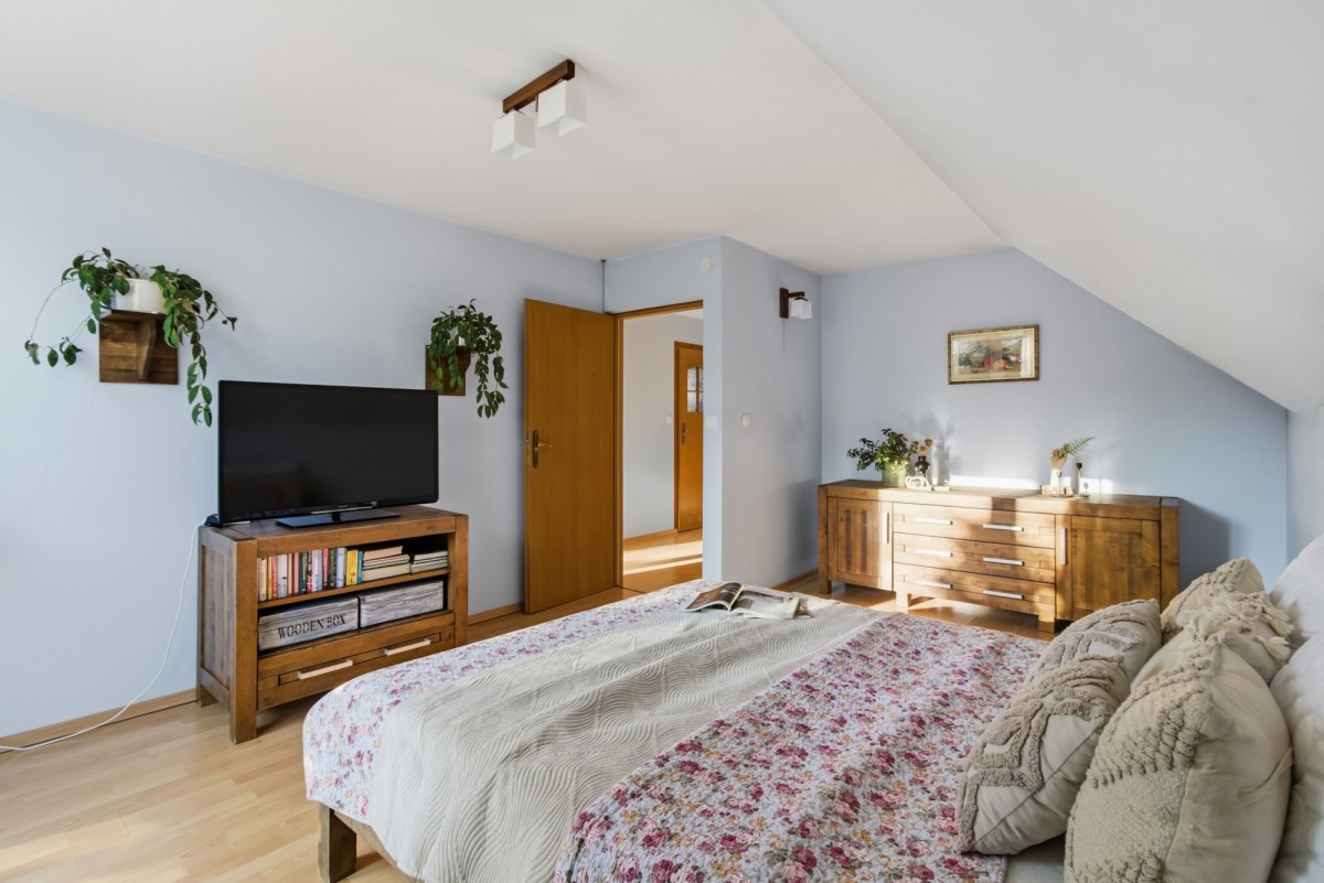 przestronny strych idealny jako schowek lub miejsce do przechowywania sezonowych rzeczy.