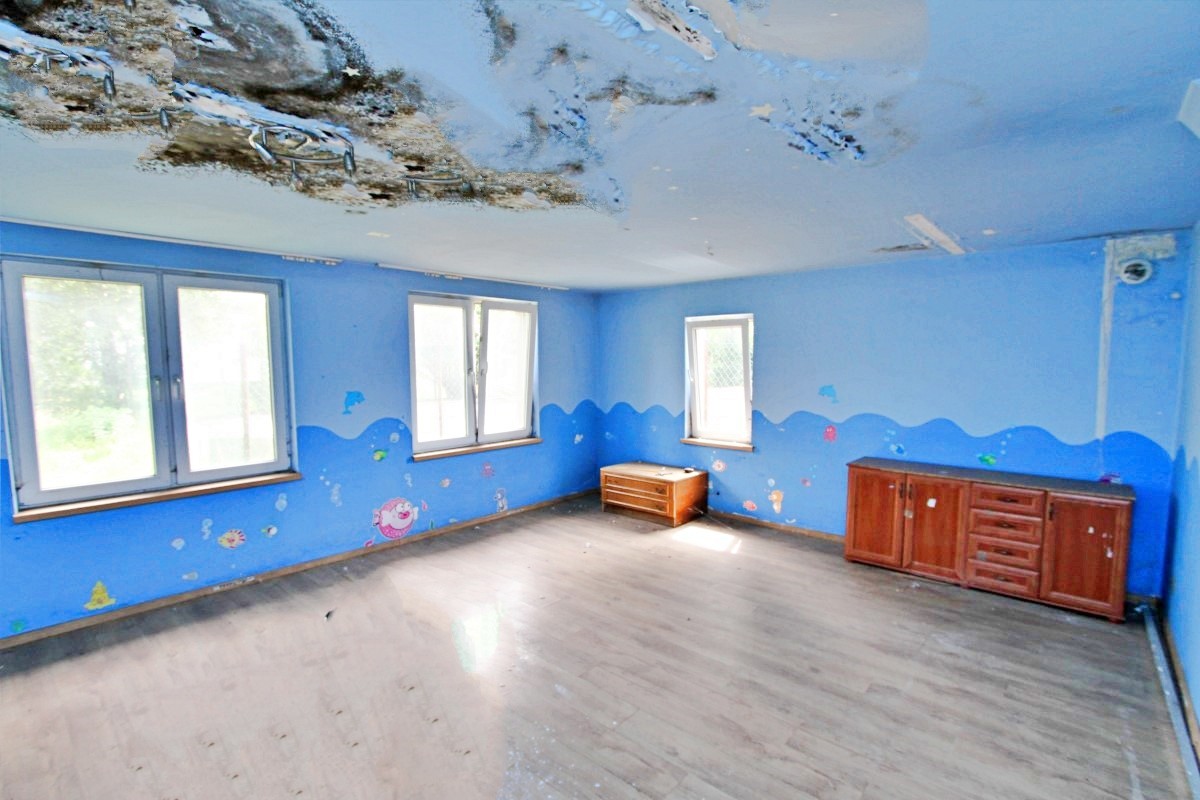 W budynku znajdują sie 2 pokoje, łazienka, kuchnia oraz kominek .