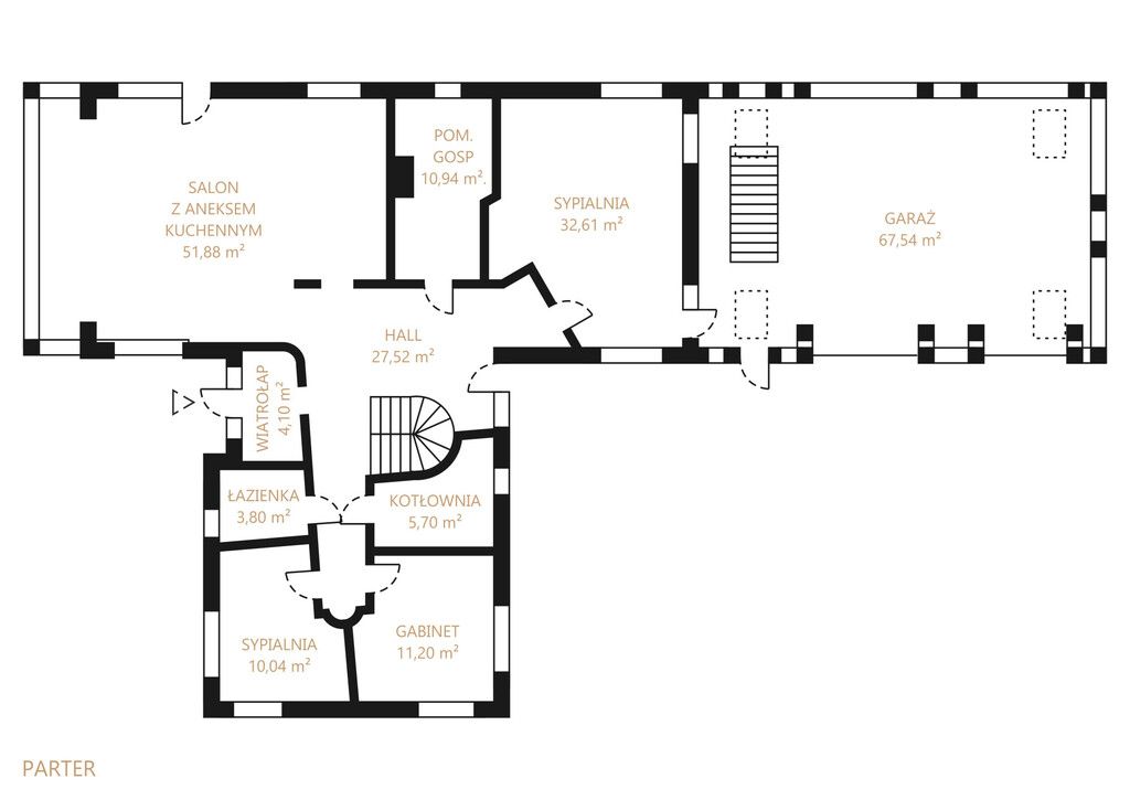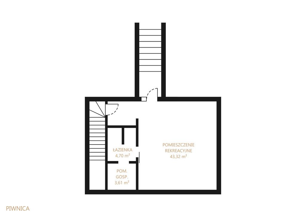 - Cześć domu podpiwniczona z możliwością aranżacji pokoju rekreacyjnego oraz sauny