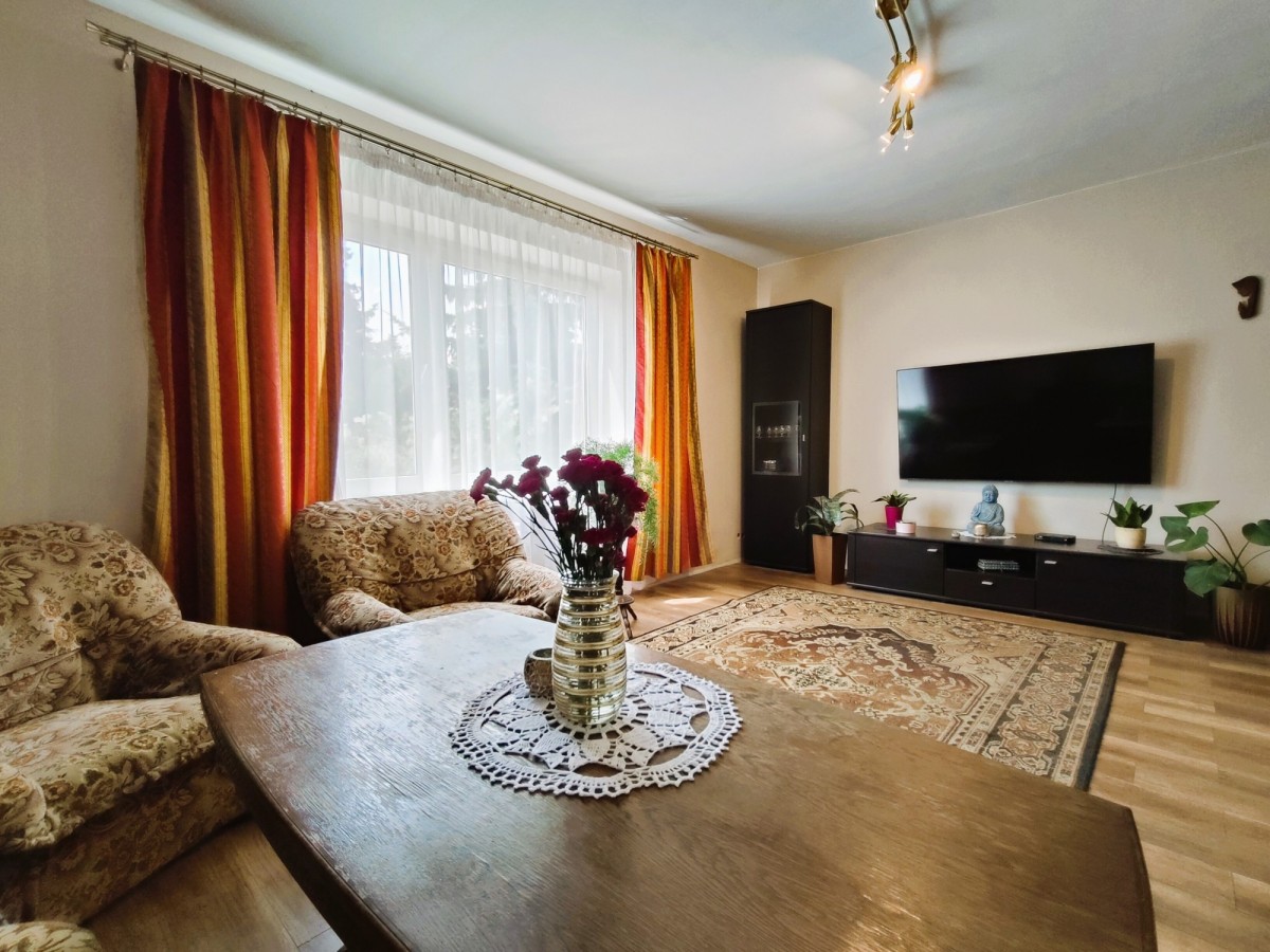 - 3 ustawne pokoje (salon z klimatycznym kominkiem z rozprowadzeniem ciepła) oraz duża, widna kuchnia.
